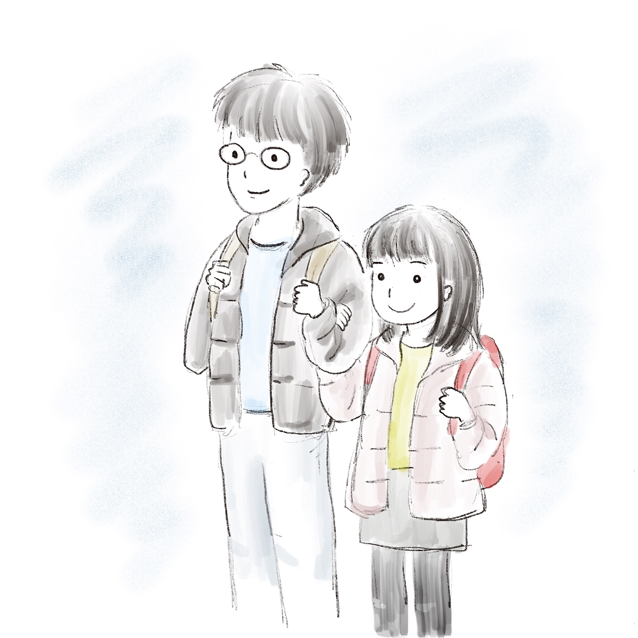 남매가 사이좋게 학교가는 모습 얼마나 보기 좋은지. 팔짱은 거의 끼지 않지만 (^^;;) 작위적인(!) 사이좋은 포즈 한번 만들어보았어요!