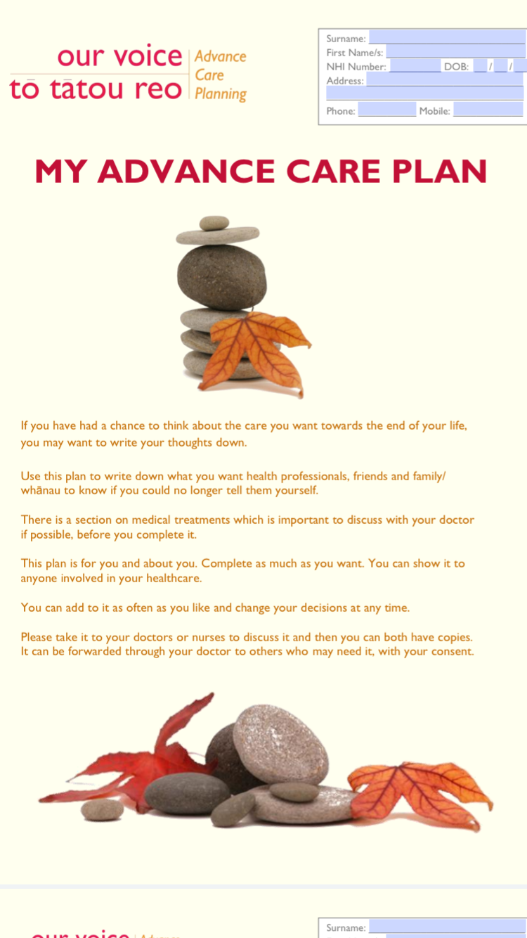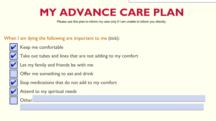ACP 에 사용되는 문서 양식은 다양하게 있는데, 수업에서 사용하였던 것은 뉴질랜드의 The National Advance Care Planning Cooperative 라는 한 비영리민간단체에서 사용하는 양식이었습니다. (www.advancecareplanning.org.nz)