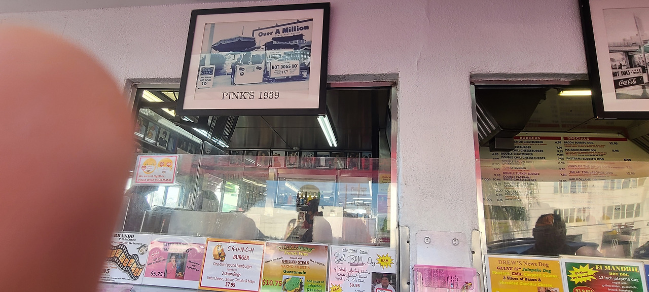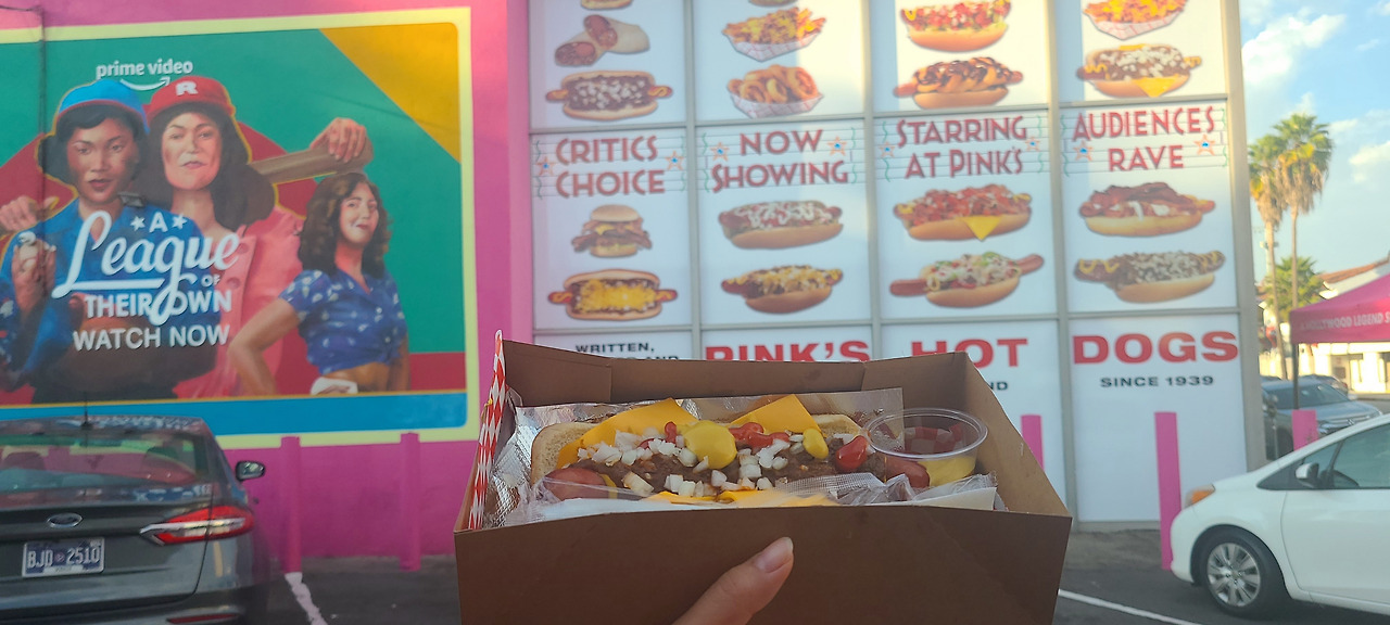멜로즈라는 거리에 대해서 정보가 없었는데, 핑크 벽과 핑크 핫도그가 유명하다는 것을 발견했었었다. 둘 다 어디에 있는지 감이 안와 살짝 마음을 떴었는데, 멜로즈 주요 거리까지 걸어가기로 하는 길에 있다고 하니 정말 좋았다.