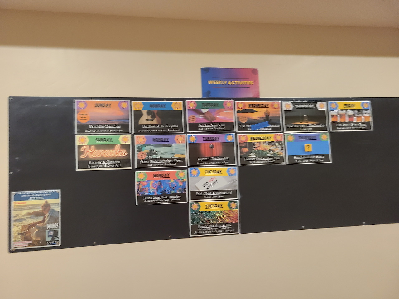 이곳에서는 서핑 보드 등을 빌릴 수도 있다. 그리고 매주하는 활동이 아주 많다. 나는 그부분이 제일 마음에 들었다. 또 마당이 있는데, 여기의 모습도 매우 좋다. 깔끔하고. 쾌적하다.