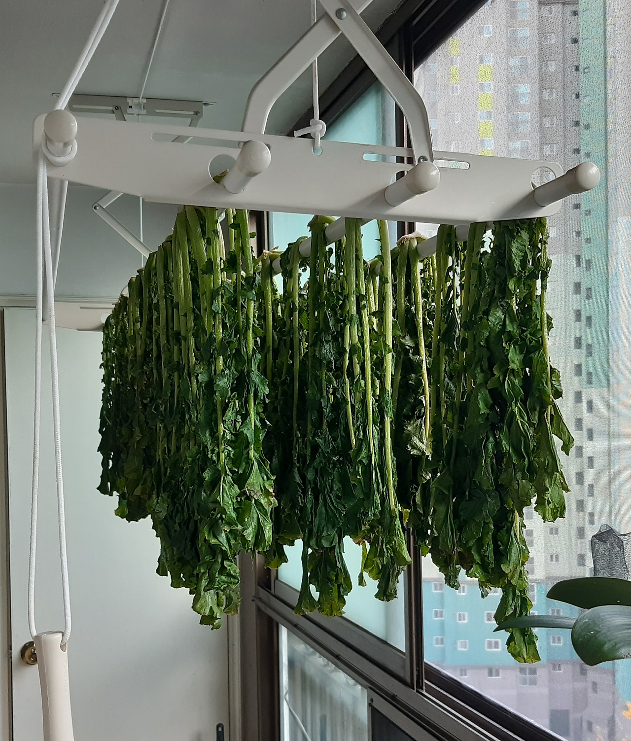 여름과 가을에 난 것을 모두 먹지 않고 조금씩 남겨 저장을 해두면 겨울이 왔을 때도 농장에서 난 것을 먹을 수 있습니다. 덕분에 채소값이 오르는 겨울에도 아쉽지 않게 섬유질이 풍부한 식물성 반찬을 먹을 수 있습니다. 말린 고구마 줄기에는 비타민C가 많아 겨울철 감기 예방에도 도움이 됩니다.