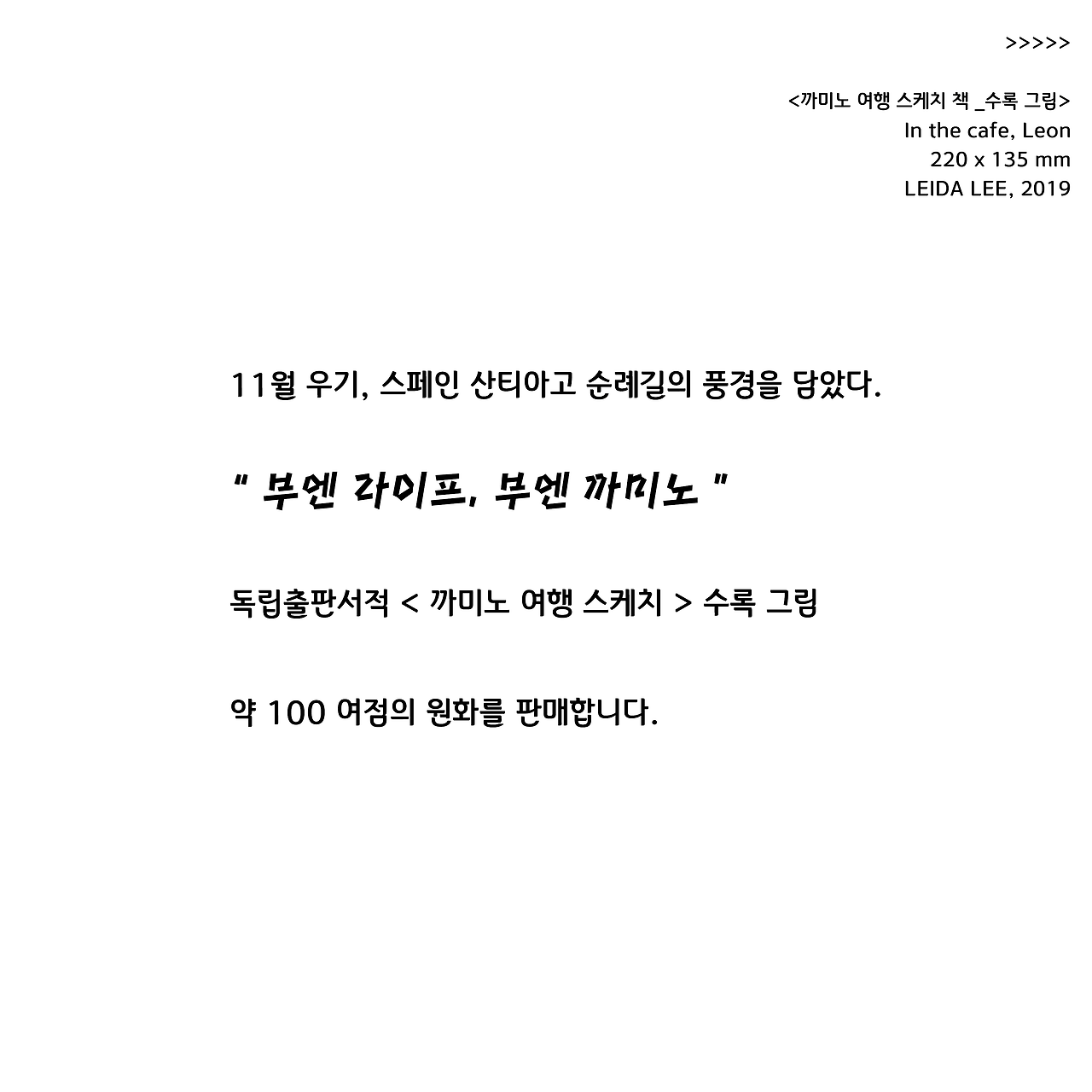 원하는 그림은 전국 서점 어디서든 판매하는 <까미노 여행 스케치>를 구매하여 "몇 페이지 이 그림 구매 가능한가요?"라고 메일을 보내면 된다.