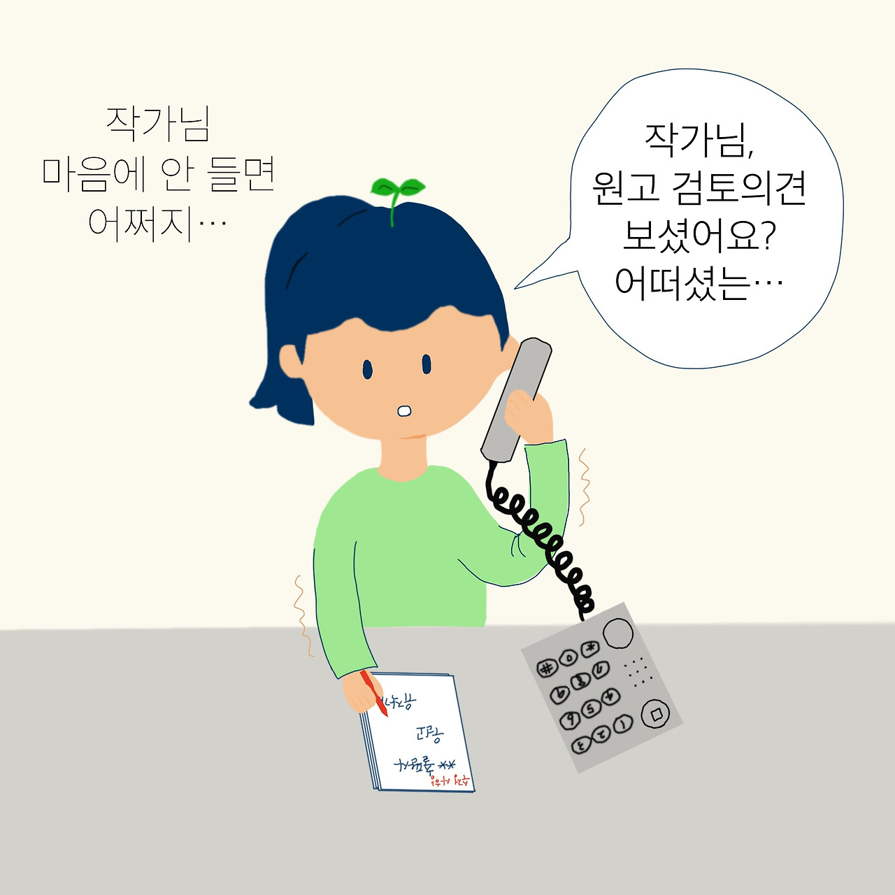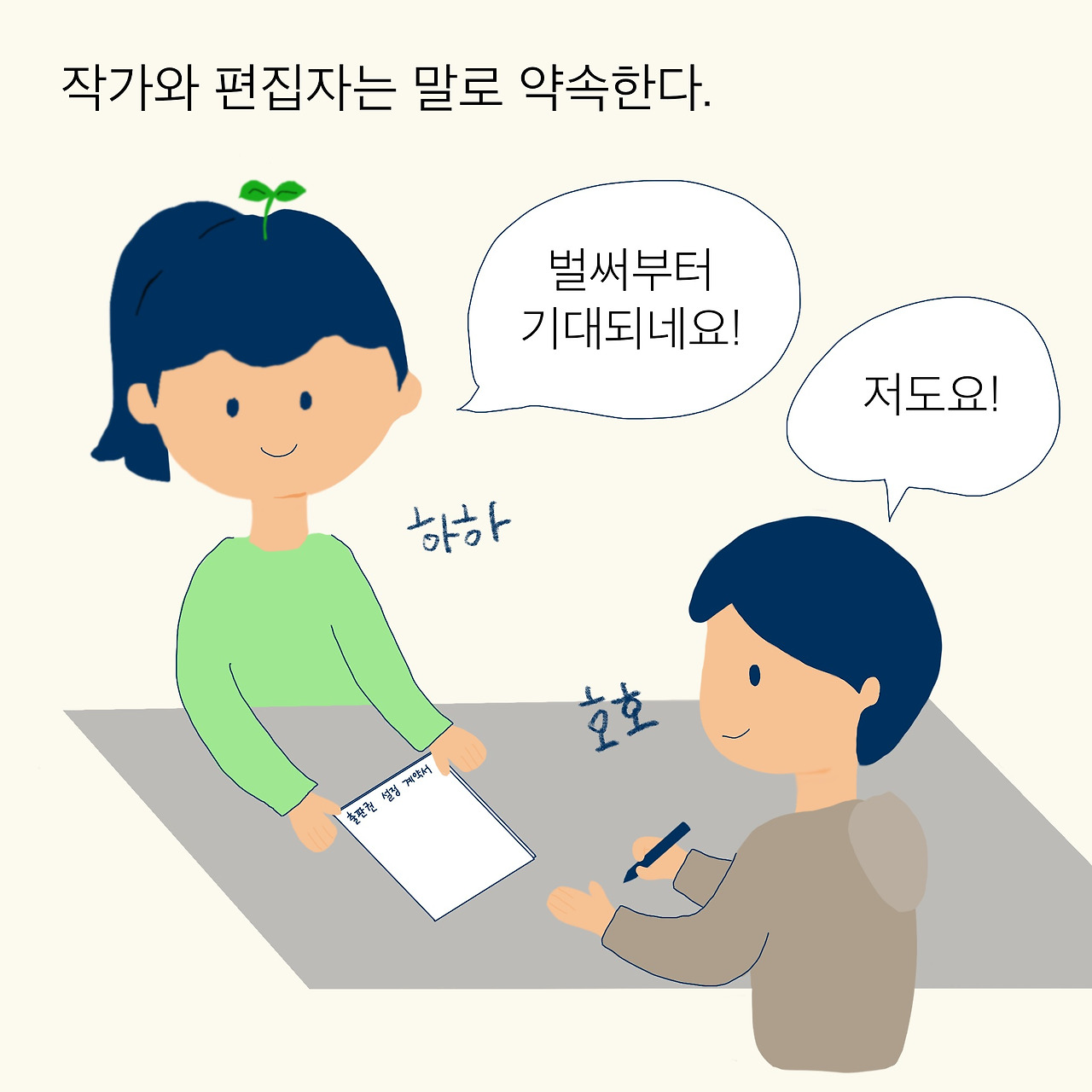 작가가 기획안의 주제에 흥미가 있고, 구성 방식에 대해 얘기가 통한다 싶으면 계약까지 진행된다. 그 과정에서도 수정을 거듭 주고받는다.
