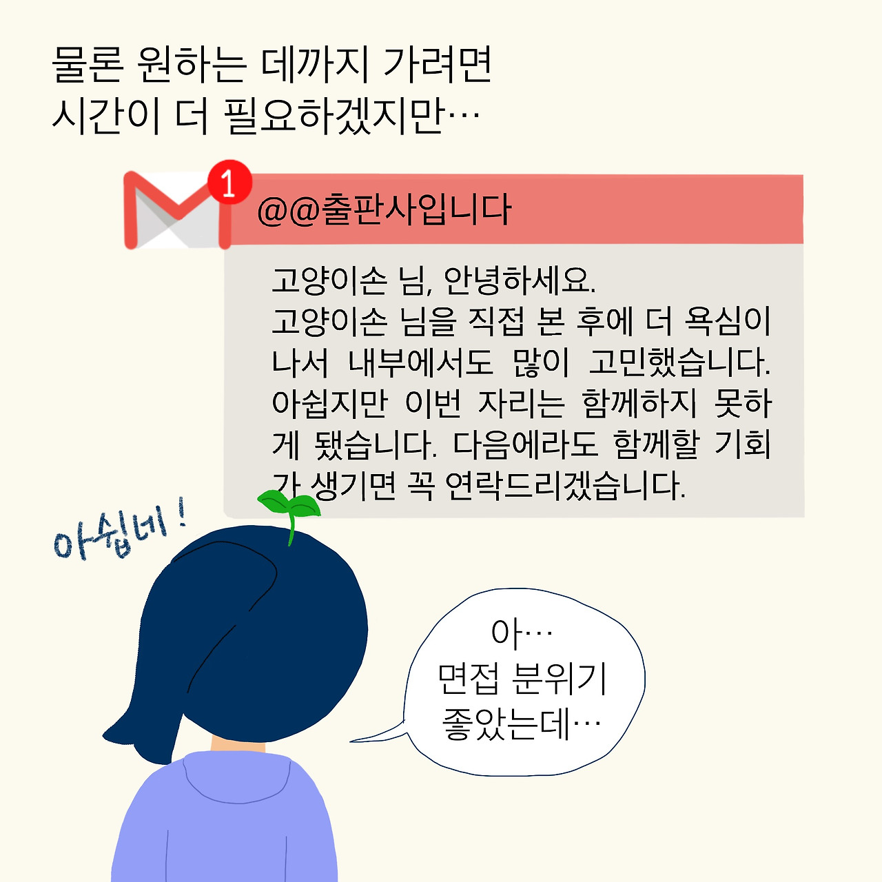 열에 아홉은 2차를 보러 오라는 연락을 줬다. 다행히 면접 볼 기회까지는 얻은 것이다. 아마도 내가 보낸 기획안에 담긴 시간과 정성을 본 것이겠지. 물론 합격까지 가는 경우는 드물었다. 하지만 면접 볼 기회도 소중한 시기였기에 그 정도로도 만족했다.
