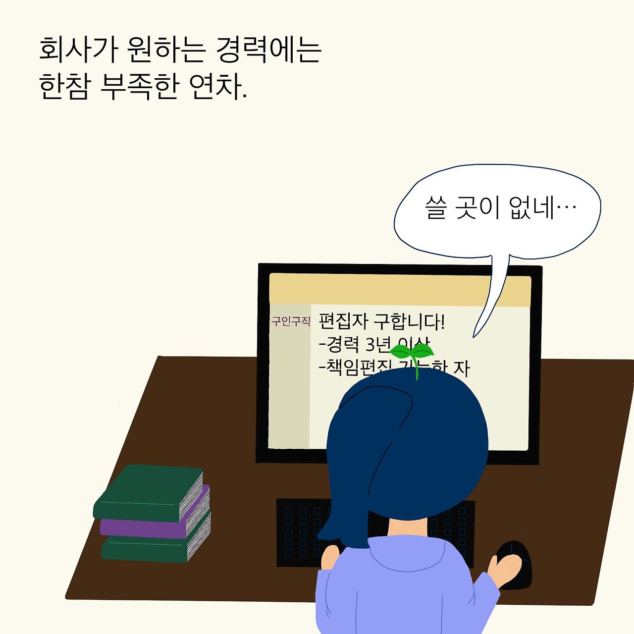막상 회사를 그만두고 나니 그제야 현실이 보였다. 이제 제법 책은 만들 줄 아는 사람이 되었다고 생각했는데, 내가 쓸 만한 곳은 없었다. 편집자를 구하는 공고마다 연차 3년이 기본이었다.
