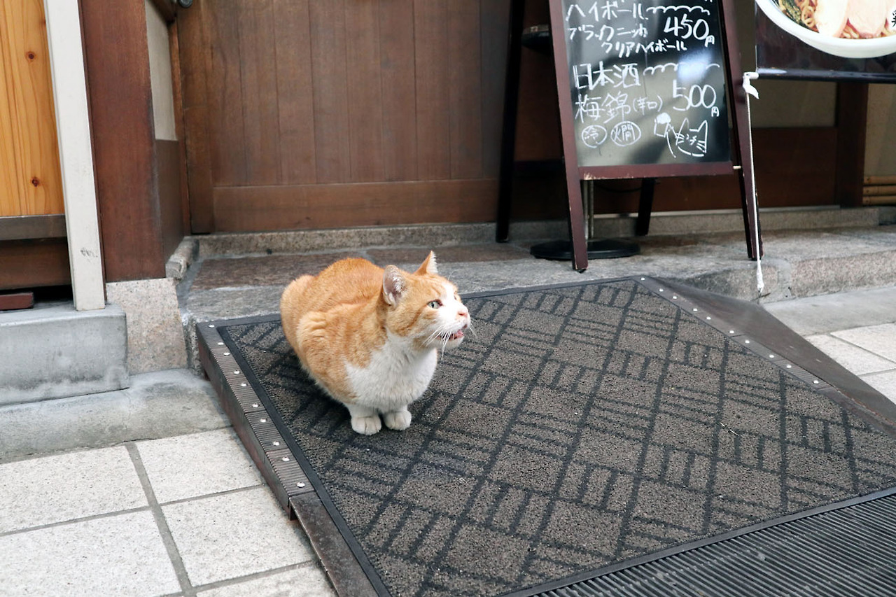우리는 비행기를 타느라 점심 때를 놓쳐서 몹시 배가 고픈 상태였다. 가까운 곳에 상점가가 있어서 저녁 전에 간단한 간식거리라도 사먹을 요량으로 그 길을 쭉 걸어갔더니 라멘 가게 앞에 고양이가 우뚝 앉아 지나가는 사람들을 보며 야옹거리고 있었다.