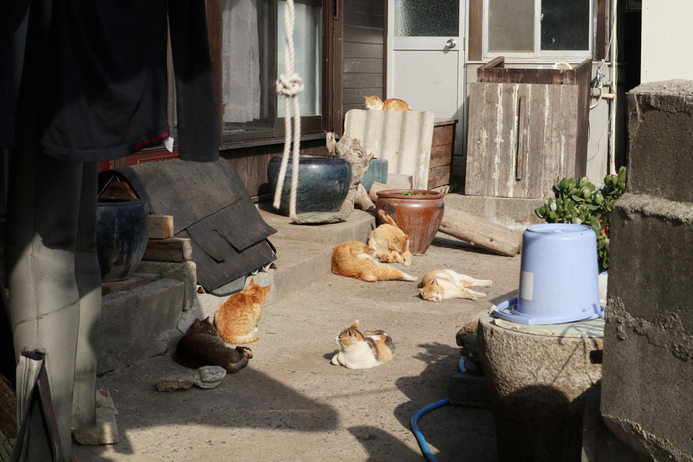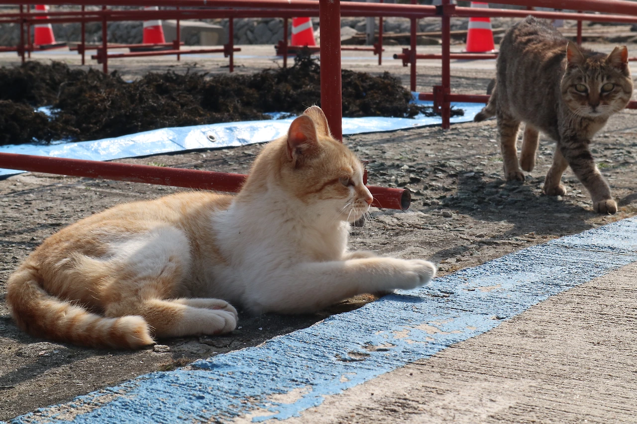 고양이들이 마음껏 살아가고 있는 땅, 누군가 일부러 해코지하러 들어오지 않는 한 주민들과 고양이들이 더불어 살아갈 뿐인 땅이라는 점에서 고양이의 천국이라는 별명이 붙을 만도 했다. 하지만 동물병원도 없는 작은 시골 섬이다 보니 어딘가 몸이 안 좋아 보이는 고양이도 있고, 중성화가 된 고양이도 보이고 그렇지 않은 듯한 고양이들도 보인다. 사람에 비해 고양이의 수가 워낙 많다 보니 사실상 누군가의 디테일한 케어는 어려울 수밖에 없을 것이다. 하지만 다들 마음만은 편해 보였다. 어쩌면 그 모습마저 길고양이들 그 자체의 삶인지도 모르겠다.