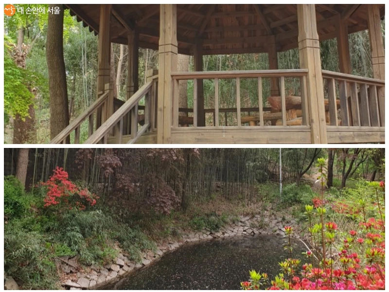 또 다른 하나는 국립 중앙 도서관과 연결된 언덕 위에 있는 몽마르뜨 공원에서 남들이 잘 모르는 샛길을 따라 걷다 보면 나오는 숨겨진 정자다. 잉어가 헤엄치는 작은 호수와 그 옆에 지어진 정자를 대나무 숲이 감싸고 있어 마치 비밀의 정원에 도달한 듯한 신비스러움을 자아내는 곳이다. 국립중앙도서관 곳곳에 있는 벤치와 몽마르뜨 공원은 한적하고 치안이 좋고 깨끗하며 화장실도 있어서 몇 년 전까지만 해도 서래마을 주민들이 종종 간단하게 맥주 노상을 하던 곳이다. 그래서 동네 친구들과 공원에서 맥주를 마시다가 2차 장소로 그 정자를 소개해 주곤 했다. 참 좋았던 게 도서관 벤치와 몽마르뜨 공원은 유동인구가 많고 24시간 개방된 장소임에도 불구하고 서래마을 주민인 동창들조차 그 정자의 존재를 아는 사람이 없었다는 것이다. 마치 나만의 비밀의 장소 같아서 친구들에게 이런 멋진 장소가 있다는 걸 알려주는 게 매우 뿌듯했다. 다만 아쉬운 점은 그곳엔 가로등이 없고 주위에 나무가 많아 밤늦게 머물기엔 조금 불편했다는 것. 모기향을 챙겨서 갔던 적도 있는데 너무 어두워서 항상 그냥 내려왔던 것 같다. 다행인 건 수풀 때문에 잘 보이진 않지만 철망 너머에 경찰서가 있어서 밤에 가도 무섭지 않았다. 낮에 혼자 산책을 하다가 마지막에 꼭 들르는 곳이었는데 단 한 번도 내가 그곳을 찾았을 때 다른 사람이 있었던 적이 없다. 가끔 산행하던 사람이 옆길로 지나가는 걸 봤을 뿐. 아직도 잘 있으려나? 날씨가 따뜻해지면 오랜만에 올라가서 이름도 지어줘야지.