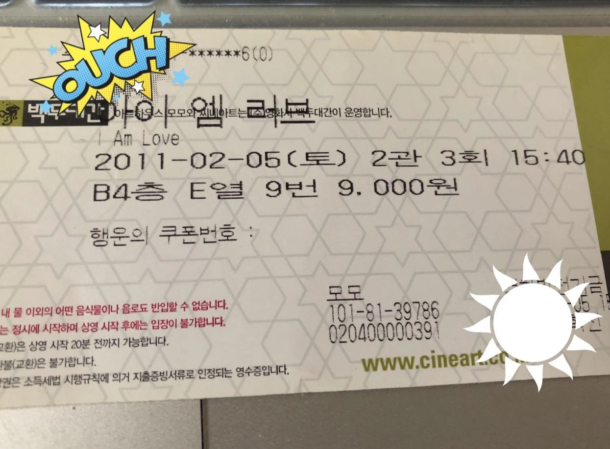 티켓을 보관하고 있었는데 예매했던 사람의 개인정보가 그대로 노출되어 있어서 한참이나 미소 짓게 한다.
