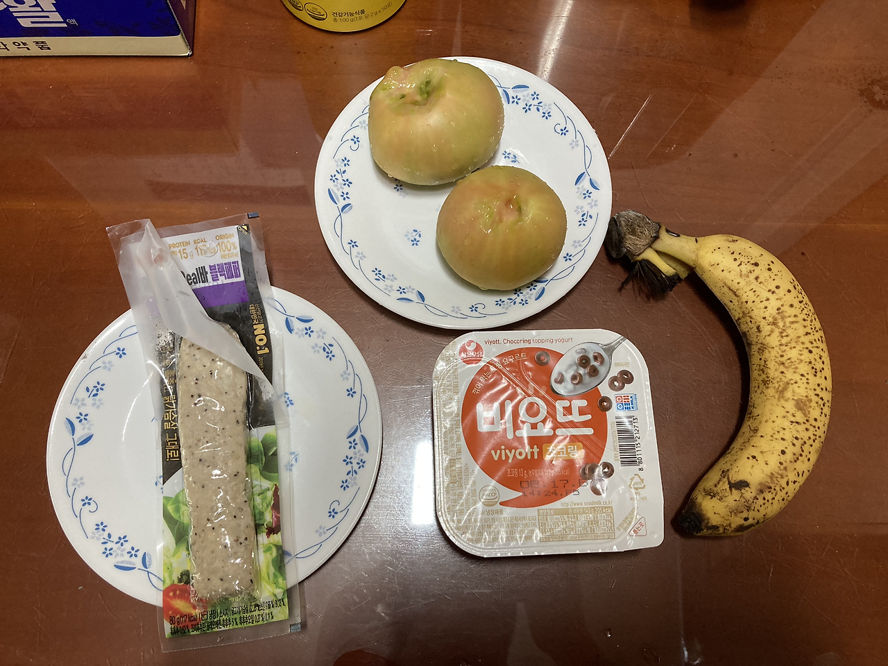 : 지난주에 먹었던 음식들을 쭉 기록해보니, 생각보다 많이 먹는다는 것을 깨달았다. 그래서 이번 주부터는 조금 더 신경을 써서 식단을 조절했다. 최대한 단백질 위주로 식단을 구성하고 탄수화물은 고구마와 바나나로 대체했다. 간식으로는 수분이 많은 토마토를 챙겨 먹었으며, 아침에는 요구르트를 하나씩 먹었다.