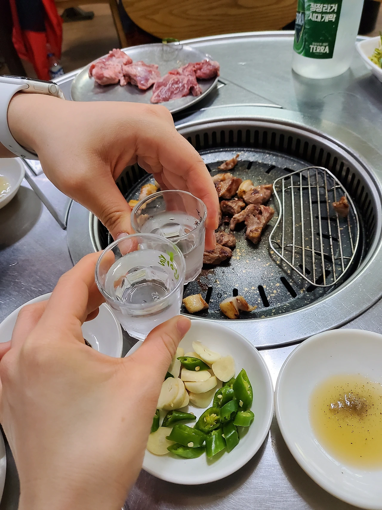 요새 돼지고기에는 금을 발랐나... 고깃집에 가면 기본 1인분 가격이 15,000원을 상회한다. 그것도 평균 시세지 핫플레이스인 홍대, 강남, 연남동 등에서는 2~3천 원 정도 가격이 더 붙는다. 또 고기에는 술이 빠질 수 없다. 소주라도 한 병 시키면 일반적으로 4천 원, 핫플레이스에서는 1천 원 정도가 더 붙는다. 고기에 소주 한 잔 하려면 대략 2만 원이 필요하다. 게다가 고기 양도 적어서 1~2인분 정도를 더 추가해서 먹어야 한다. 그뿐만 아니라 볶음밥도 시키고, 된장찌개도 시키고, 냉면도 시키고 해서 배부르고 얼큰하게 취하면, 2인 기준으로 대략 6~7만 원 정도가 나온다. 한참 먹을 때는 모르다가 막상 계산서를 보면 아찔하다.