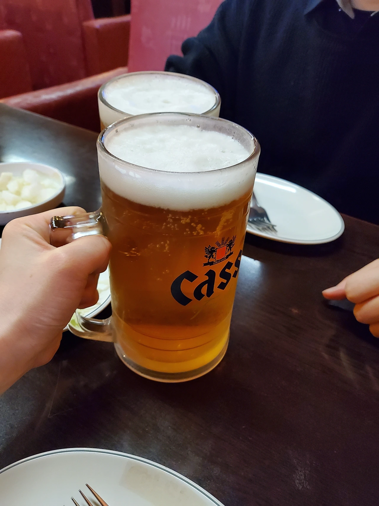 닭이 조리되는 동안 사장님이 맥주를 가져다주신다. 내가 자주 가는 곳은 독특하게 1000cc 맥주를 팔아서 사실 그걸 자주 먹는다. 예전에 잠깐 바이킹 맥주라고 유행했던 맥주인데 여기는 아직 파는 것 같다.