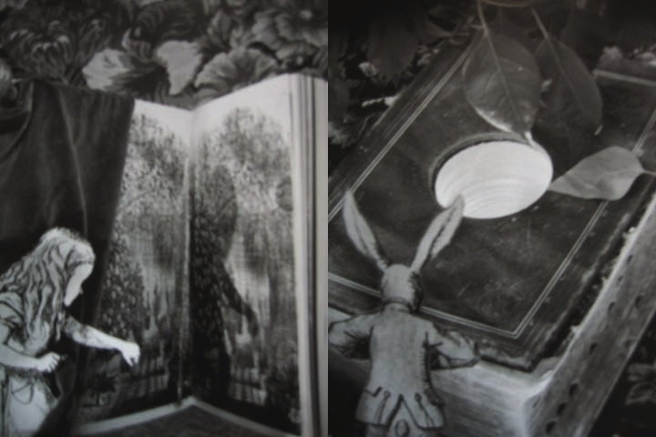 아벨라르도 모렐(Abelardo Morell)은 쿠바 태생의 미국 사진작가로, 상상을 실행하는 도구로 카메라를 활용한 감각적인 재치를 구현해 낸다. 모렐은 핀홀 카메라(바늘구멍 카메라 Pinhole Camera)의 원조격인 카메라 옵스큐라(Camera Obscura)를 사용하여 방이나 공간 전체를 거대한 카메라로 바꾸어 외부 풍경이 실내 벽에 거꾸로 투영된 이미지를 촬영한다. 즉, 시간과 공간을 전복시키는 옵스큐라 기법을 활용하여 일상적인 공간을 새로운 시각으로 구현하면서 늘 보아오던 상상을 거꾸로 박히는 듯한 루이스 캐럴(Lewis Carroll)의 엉뚱녀 앨리스와 그녀를 상상의 세계로 이끌었던 화이트 래빗, 앨리스가 탐험했던 이상한 상상의 세계를 과감하고 초현실주의적인 시각으로 표현했다.