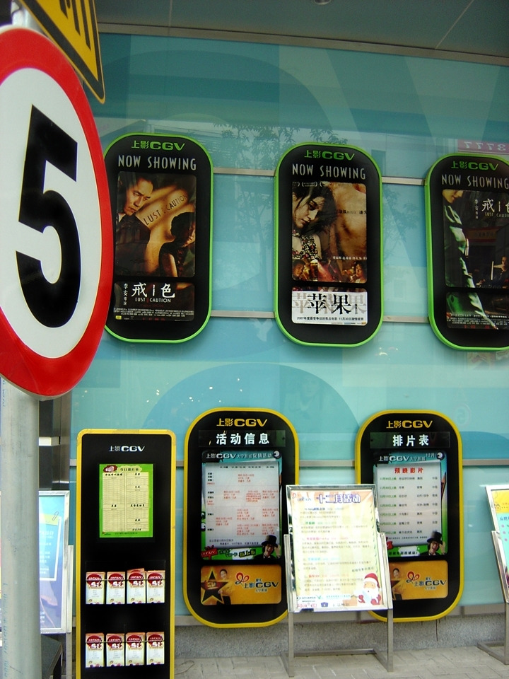 TV와 DVD로 인해 영화산업이 환영받지 못하는 현실을 중국의 극장에서 확인하고 있다. 조용히 취미생활을 즐길 수 있어서 좋지만, 일요일에도 관객이 없는 영화관은 낯설기만 하다. 적적함이 감도는 12월의 영화관이라... 따닝국제상업광장 (大寧國際商業廣場)의 CGV주변은 크리스마스 준비가 한창이다. 크리스마스트리에 붉고 노란 장식이 반짝이고 캐럴이 거리에 울려 퍼진다. 옷차림은 가을중심, 마음은 겨울중심. 우유홍차를 사 들고 극장을 배회하다가 사과를 베어 무는 판빙빙(范冰冰)의 모습에 끌려 <苹果 Lost in Beijing>를 봤다.
