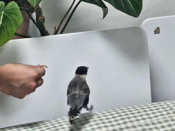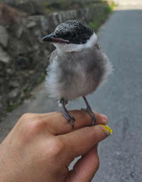 사실 동물이 찾아온 일이 전에도 있었다. 한 달 전, 둥지에서 떨어져 고양이의 위협을 받을뻔한 아기 물까치를 이틀 동안 임시 보호한 적도 있다. 엄마를 찾아주려 주변을 물까치와 주변 곳곳을 어슬렁거려 보았지만, 엄마를 찾을 수 없었다. 처음 물까치가 우리 손에 잡혔을 때, 물까치는 남자친구의 손을 피해 도망을 조금 다녔으나 곧 잡히게 되었다. 잡히고나서는 저항을 하지 않고 조용히 손안에 들어가 있었다.