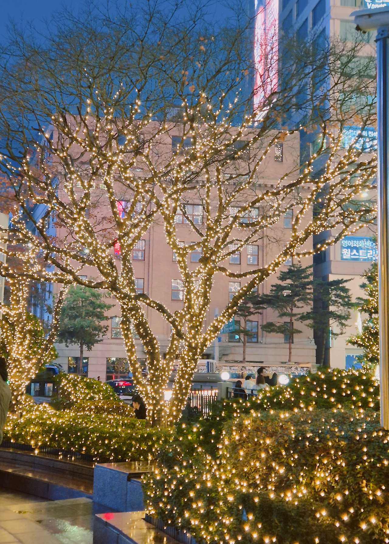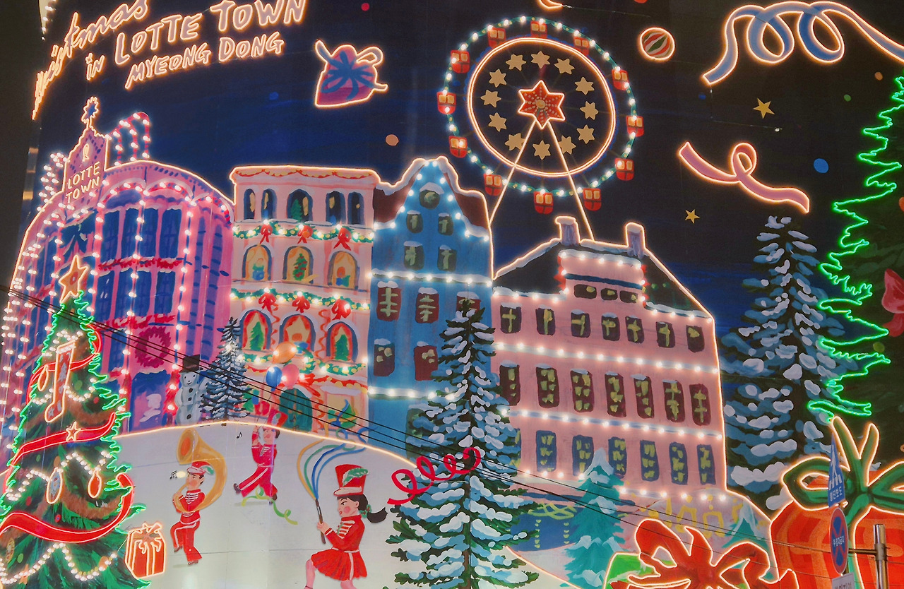 도시의 겨울은 성탄 트리와 화려한 조명으로 반짝입니다. 즐거워하는 연인들과 가족 그리고 외국인 여행자들이 반짝이는 거리를 분주히 오고 갑니다.