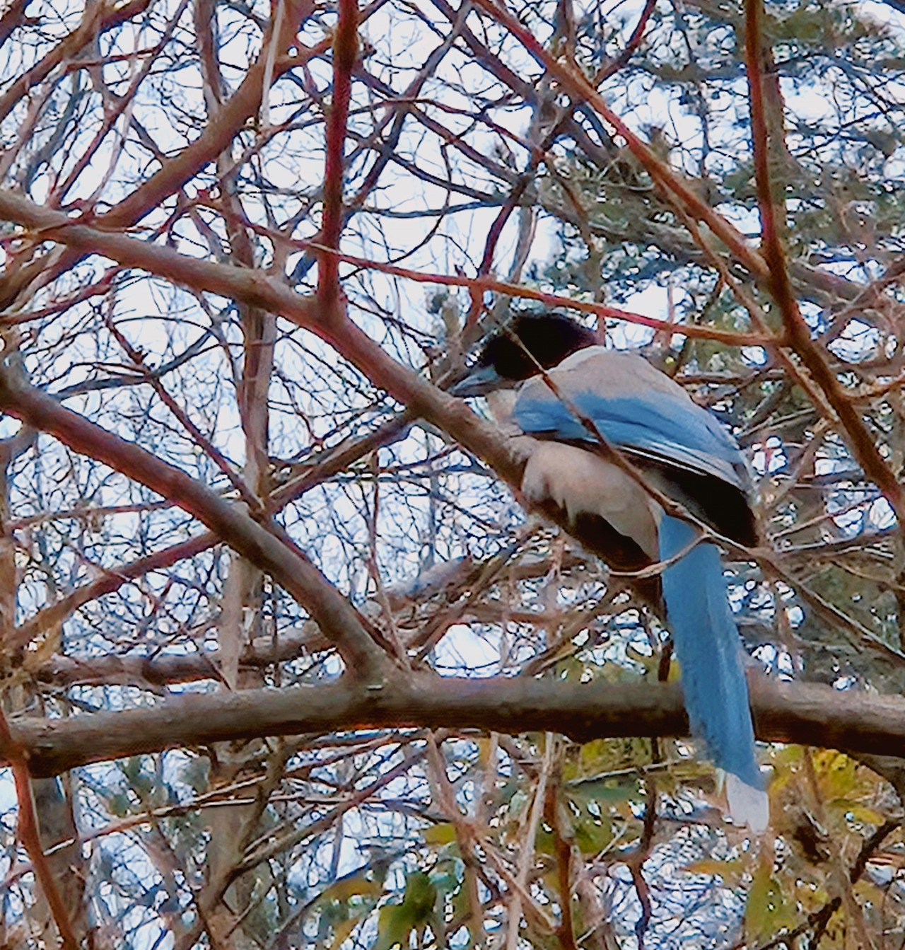 건초와 낙엽이 쌓인 땅을 뒤적이니 어느새 땅속에선 핑크빛 작약움이 트고 있네요. 아침식사를 끝낸 물까치는 나뭇가지 위에서 한가로이 여유를 즐기구요.