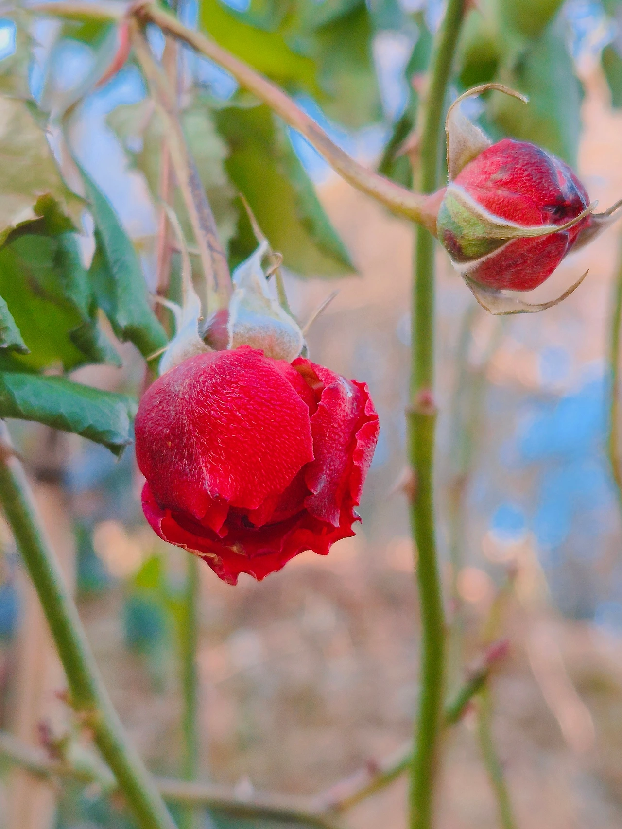 가을에 일부러 따지 않은 치자열매는 겨울햇살과 바람을 맞으며 한 계절을 지나버렸고, 붉은 겨울장미는 겨우내 피지도 못하고 그대로 건조되어 버렸네요. 이러지도 저러지도 못한 채 정지되어 버린 나의 삶처럼...