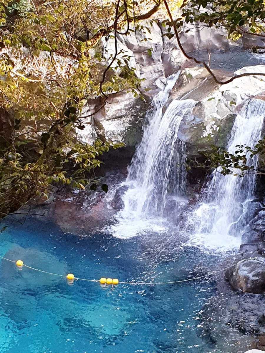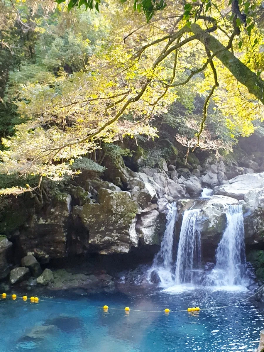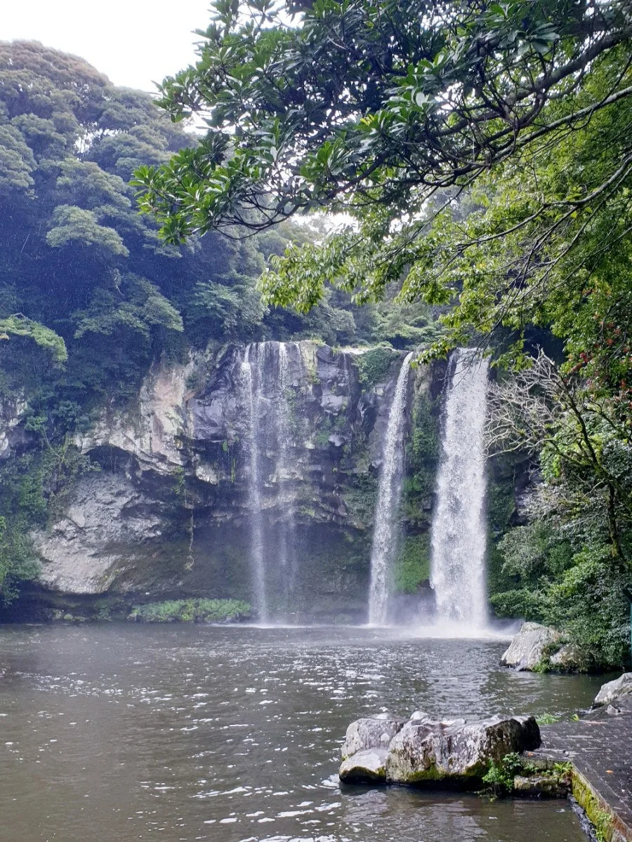 서귀포 돈내코계곡에 있는 원앙폭포는 숲 속에 있고 가파른 계단을 따라 내려가는데 그 우렁찬 폭포소리에 마음까지 뚫리는 듯하다. 장마철에는 입구를 막아두어서 물속에는 들어가지 못했지만 보는 것만으로도 눈이 시원하다.