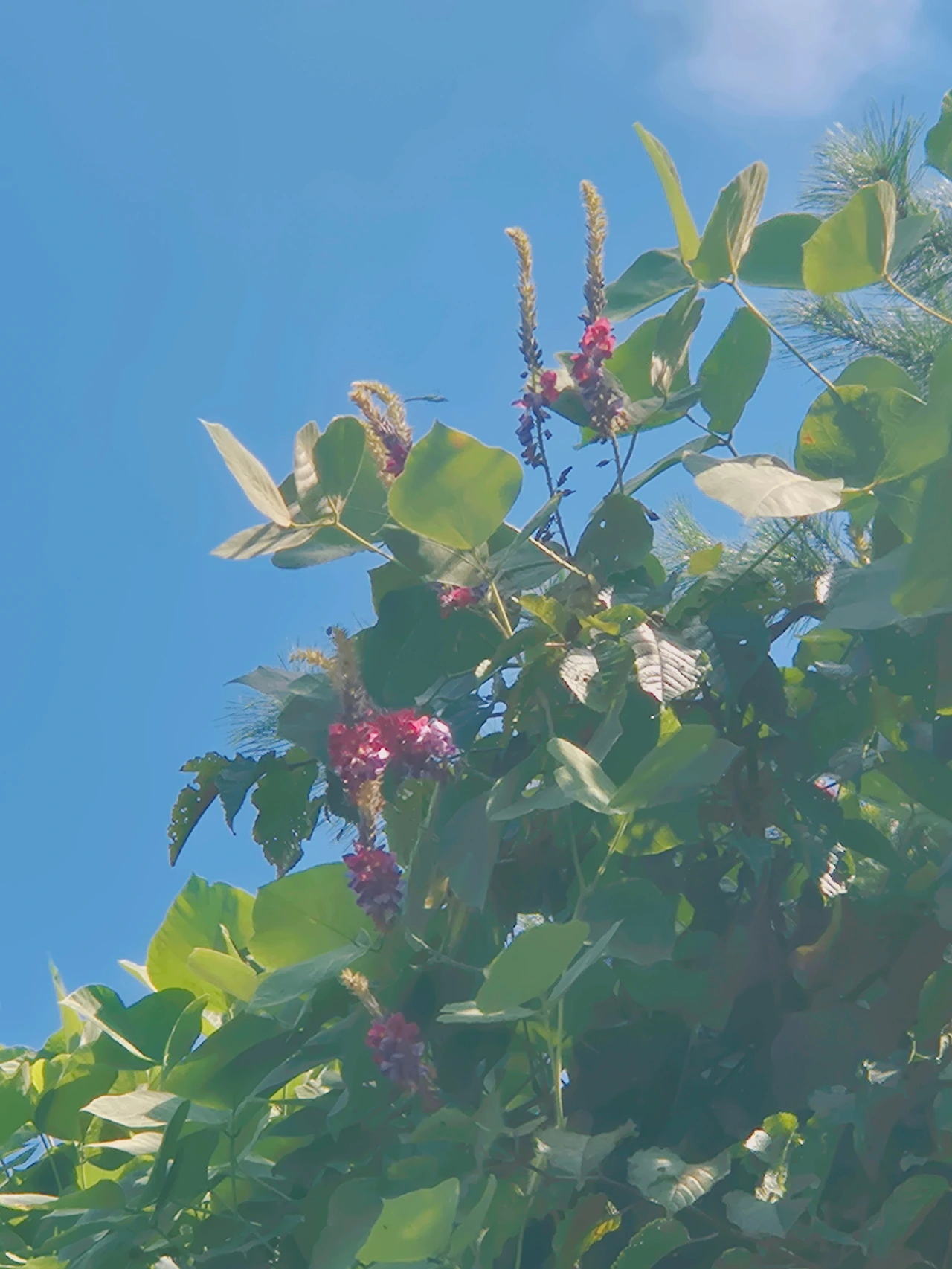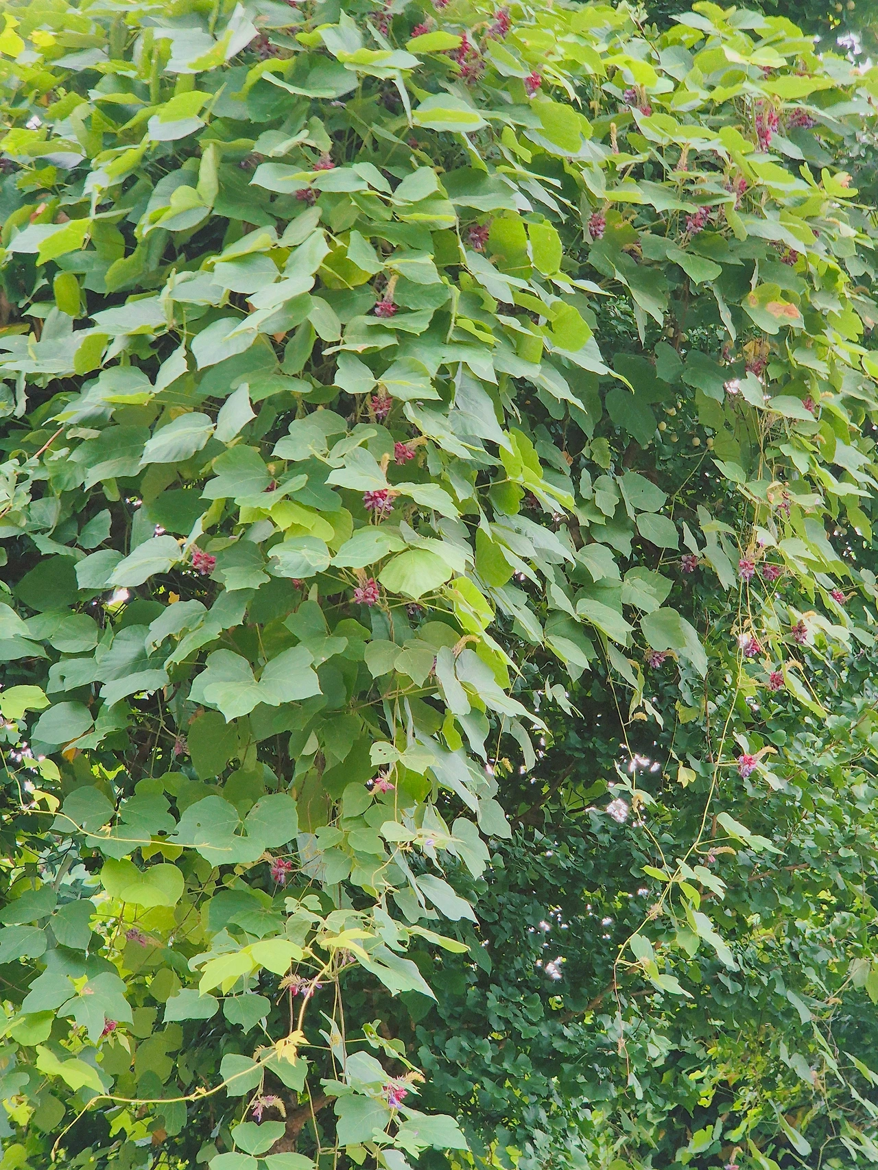 시골에 와서 가을을 느끼는 방법은 바람결에 실려오는 칡꽃향기의 싱그럽고 달큼한 향을 맡는 것이다. 일부러 칡꽃이 많이 피어있는 길을 찾아다니며 향기를 맡고 그 보랏빛 꽃을 감상한다. 칡넝쿨의 단점은 그 강한 성장세가 다른 나무를 말라죽게 한다는 것이다. 칡넝쿨에 감긴 소나무가 말라죽는 걸 가끔 본 적이 있다. 은행나무나 아카시아나무는 칡넝쿨에 좀 강한 듯하다. 서로 공생하며 살아가는 식물들을 보면 흐뭇한 미소가 번지지만 어느 하나가 다른 하나를 숨 못 쉬게 해 버리면 왠지 슬퍼진다.