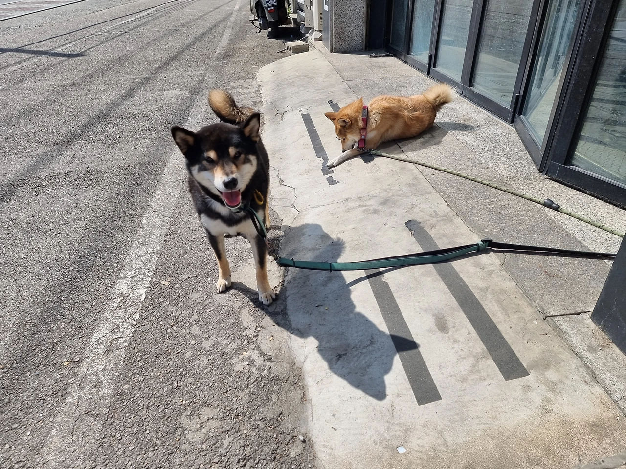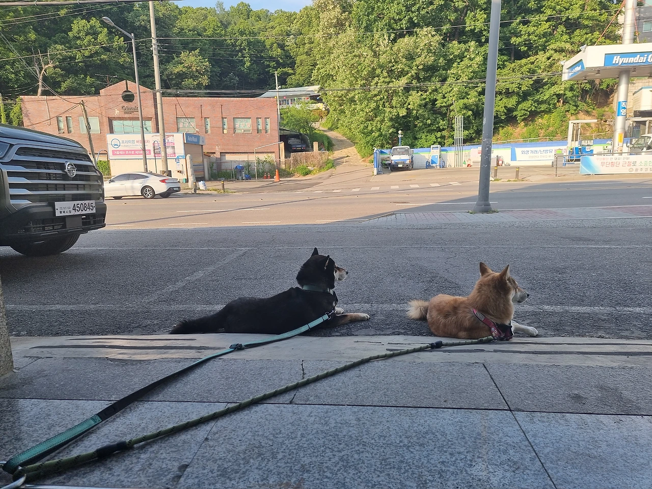산책 후 만족한 복구와 뭔가 아쉬운 눈빛의 덕구