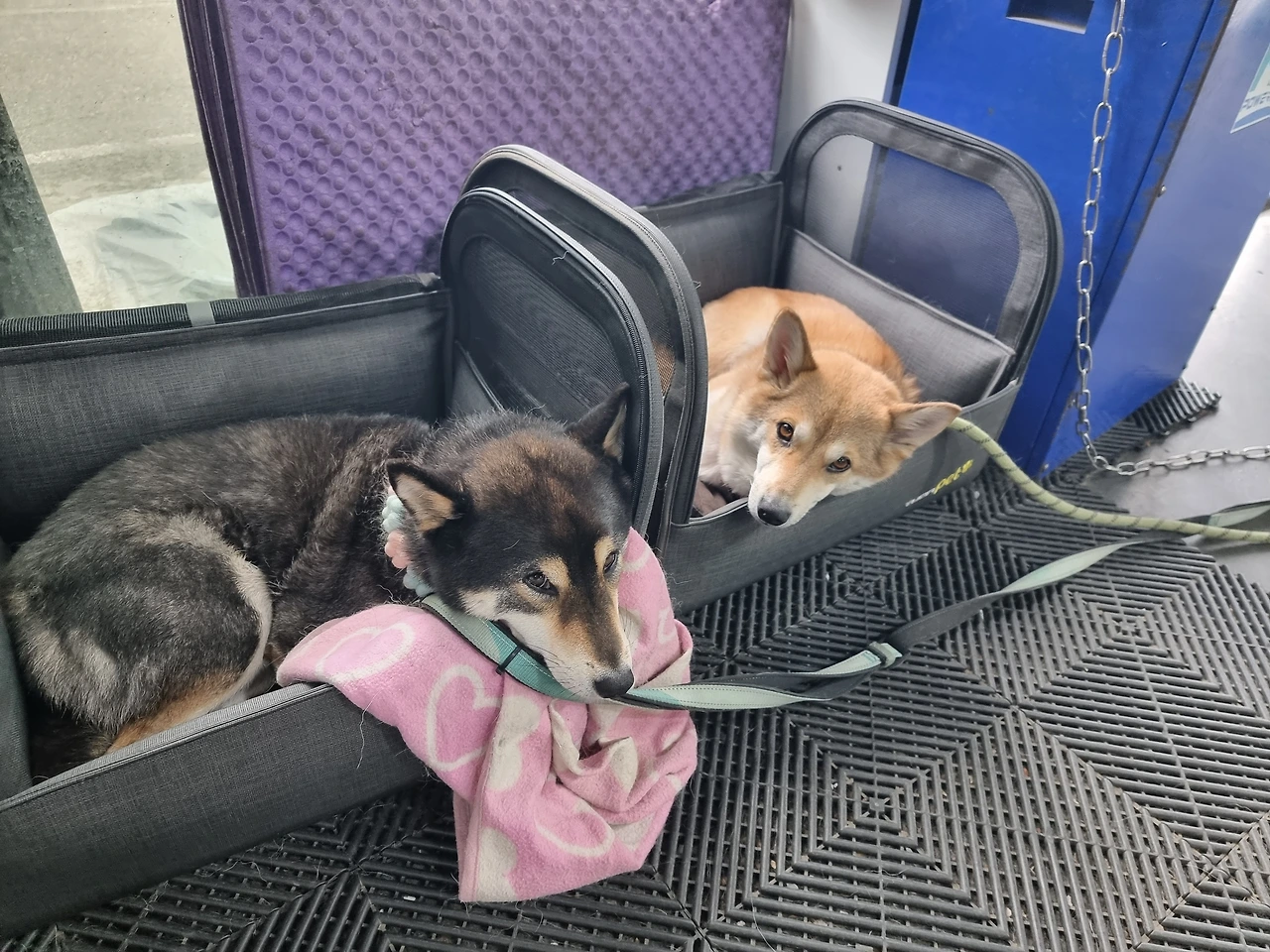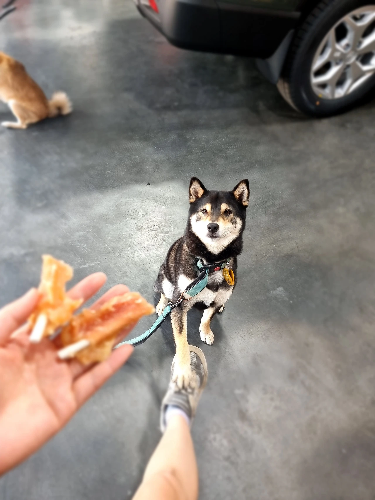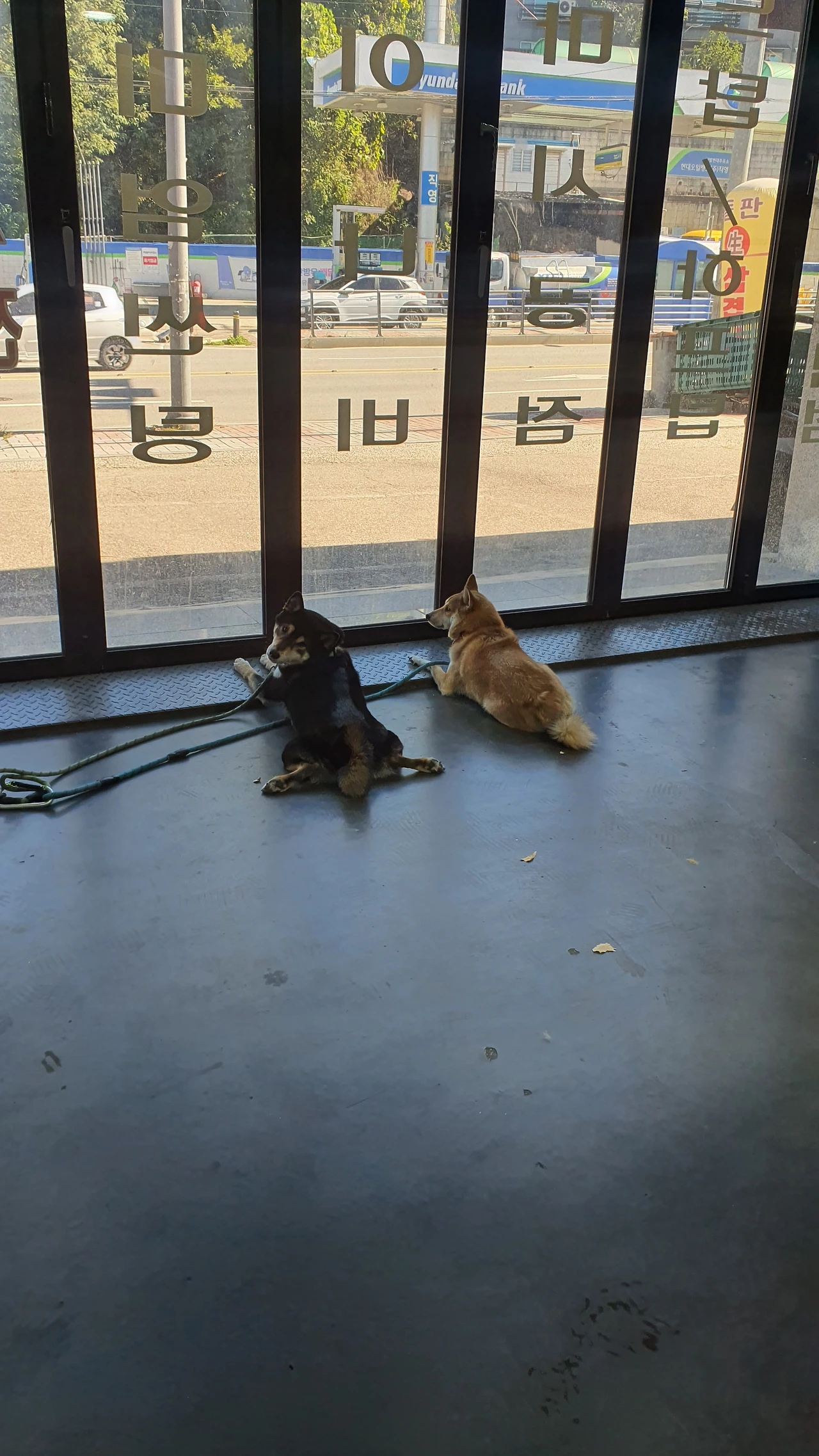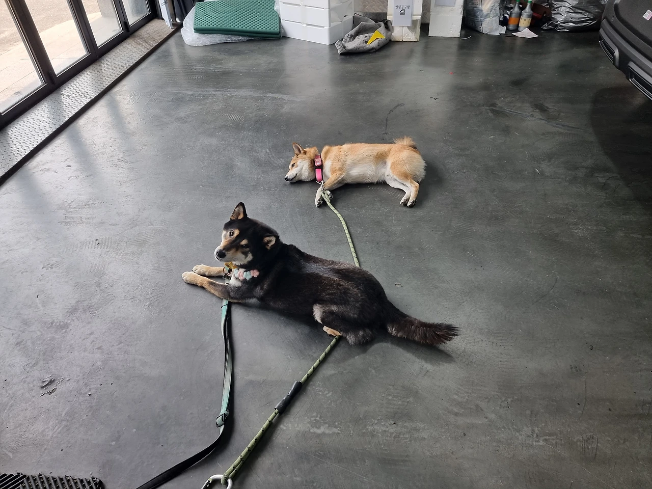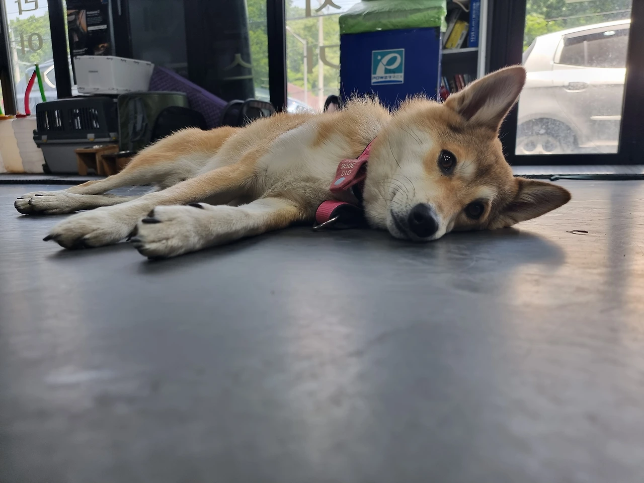 한가한 날엔 폴딩을 모두 닫고 넷이 공놀이를 하거나, 구구가 밖을 보고싶어하면 줄을 길게 주차라인까지 늘려 일광욕을 쬐게 했다. 그러다가 30분에서 1시간의 텀이 생기면 뒷길 논두렁으로 산책을 다녀오거나 애견용품점에 데리고 가 간식과 장난감을 사주곤 했다.