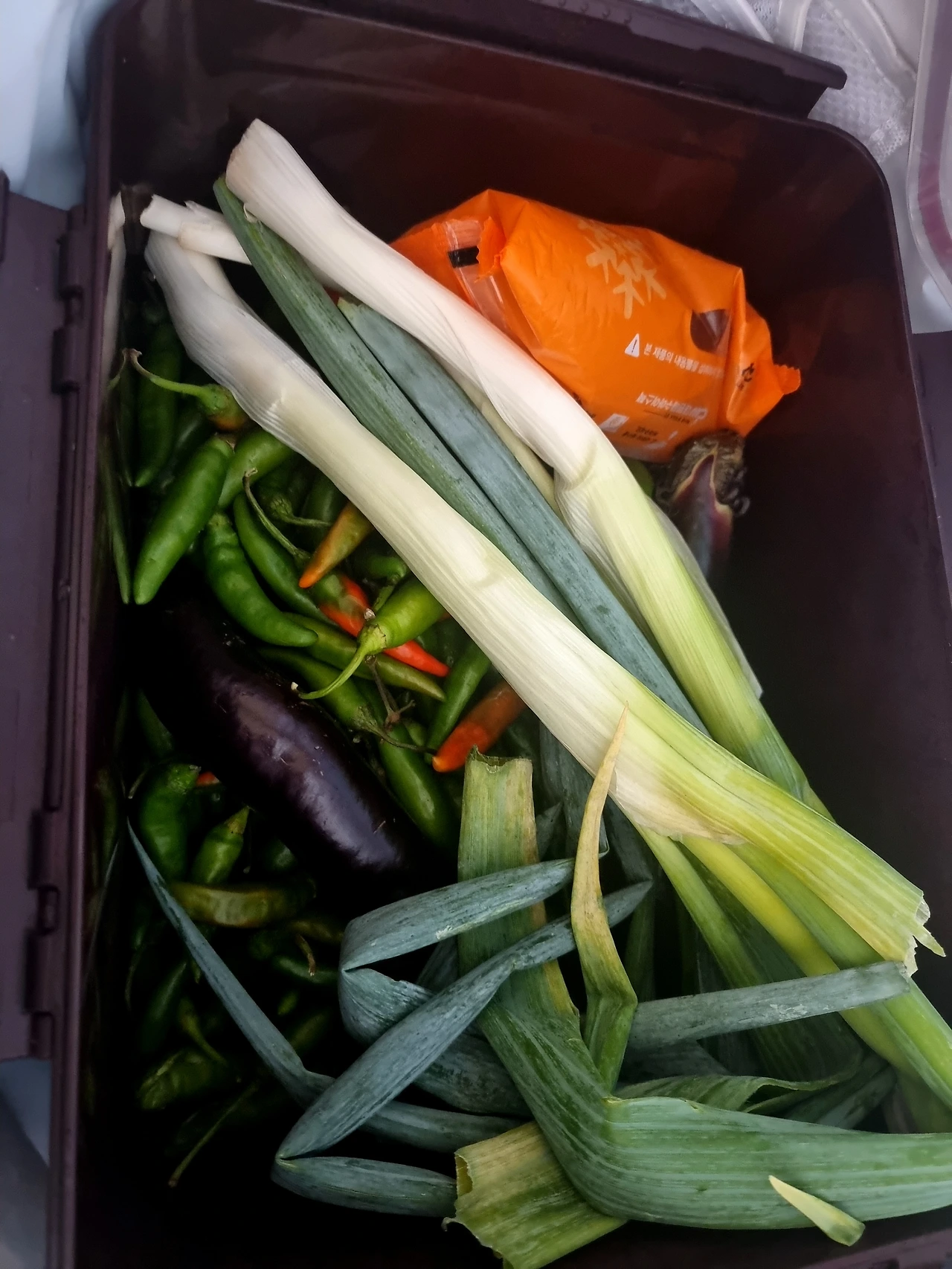 "청양고추 매워 못먹어." "어머님 언니네는 좀 챙겨줘요. 그리고 할머니들이랑 이거 가지랑 호박이랑 배는 나눠드시고~" 어머님은 언니 생각하다 할머니 얘기를 하니까 청양고추도 더 담아두신다. "저희 둘이라 어차피 이거 다 가져가면 버려요. 어머님이 나눠드셔요 강화할머니네도 주고 이거는 오전할머니 오후할머니 드려도 되고."