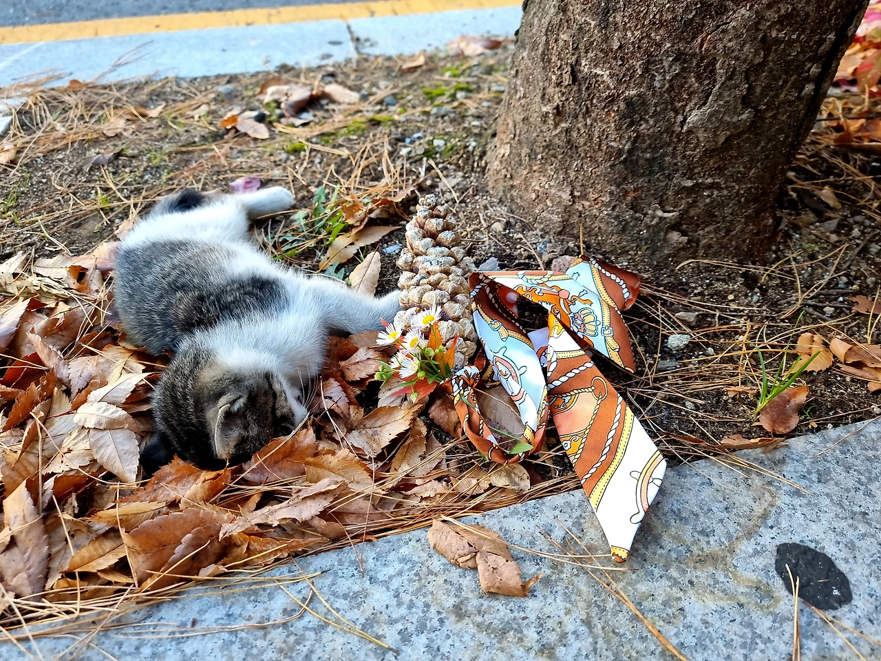 그래서 그냥 다음 생애는 조금 더 오래, 이왕이면 아프지말고 단단하게 원하는 삶 살다 가라.. 이런 마음으로 그냥 길가에 있는 작은 꽃,낙엽으로 무언가 옆에 놓아주고 싶어 마음가는대로 했다.