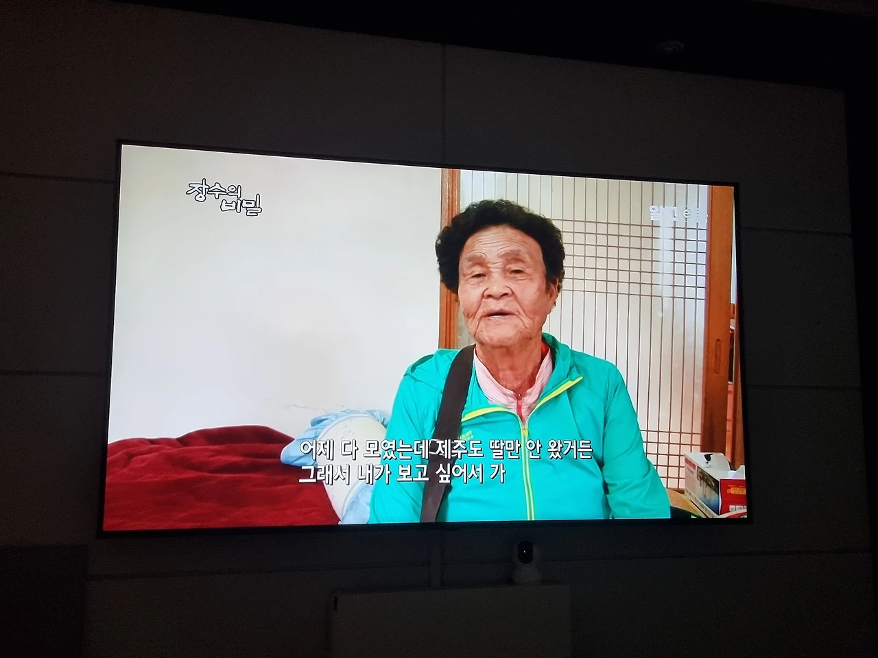 자식들이 할머니랑 자려고 거실에 이불펴고 자고