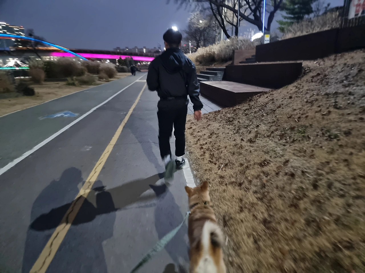 빙긋 웃으며 손을 잡고 걷는 우리가