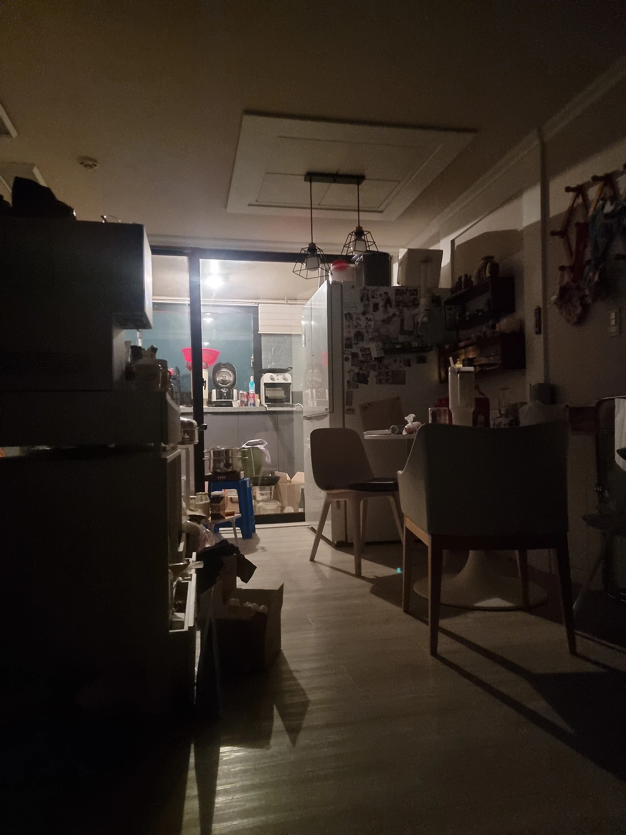 노오란 주방베란다 불빛까지.