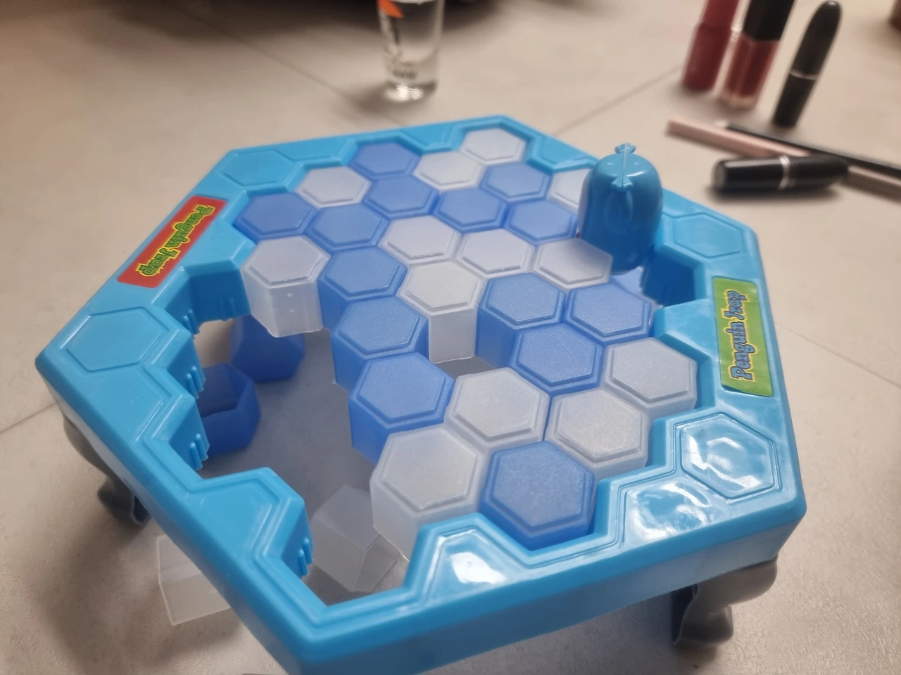 나는 계속 흰 블럭 2개+파란 블럭 1개가 많이 나오고 나머지 사람들은 다 1개씩만 나와서 대환장파티. 결국은 2명씩 3팀으로 부부대항전. 첫판에 펭귄 보내버린 내 친구야. 사랑한다. 팀전에 꼴찌한 내 친구 부부는 편의점 아이스크림을 샀다. (베스킨라빈스 없어서 슬퍼하던)