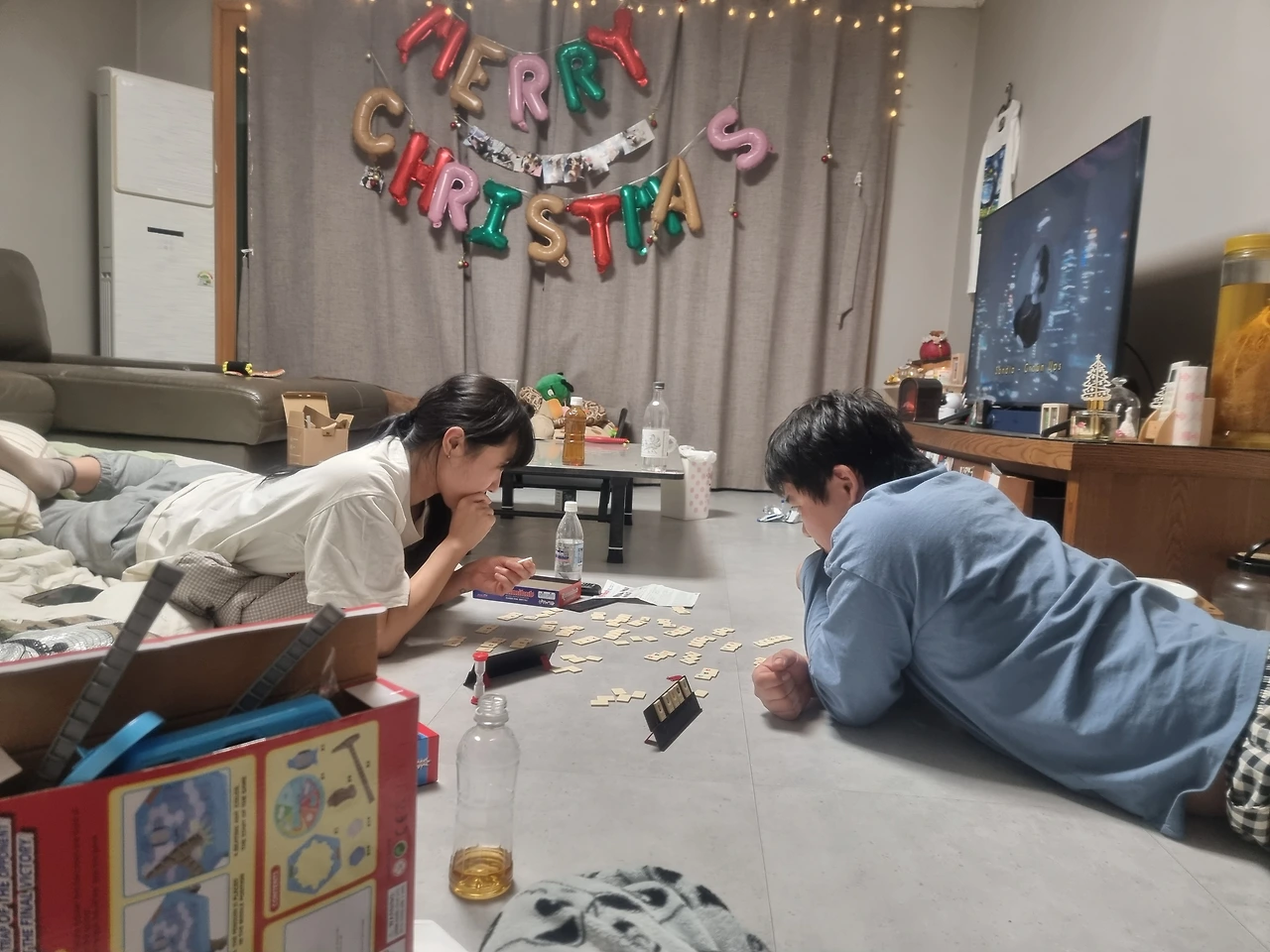 남편이 친구들과 펜션여행에서 음악틀고 맞추던 게임이 재미있었는지 연말모임에서도 신이 나게 진행을 하는 게 정말 많이 웃겼다.