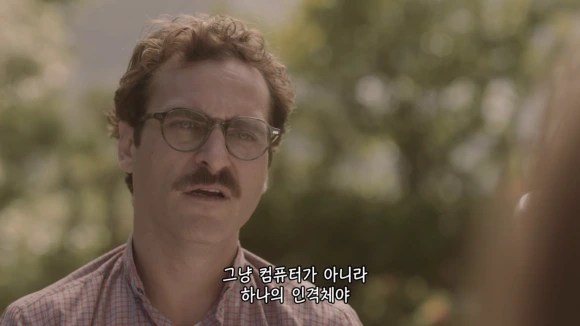 영화 「그녀」는 여러가지 이야기를 건네준다. 그만큼 영화는 내용적으로 탄탄하고 풍성하다고 할 수 있다. 영화가 다양한 이야깃거리를 제공해준다고 해도, 하나의 큰 덩어리를 제시하는 것은 분명한 것 같다. 그건 영화의 포스터에 표기된대로 바로 '사랑'이다. 포스터 이미지 상에 표시된 감독 이름 스파이크 존즈 옆에 새겨진 "LOVE STORY"라는 문구는 바로 그러한 맥락에서 적절하다. 이 사랑 이야기는 인간과 인공지능 프로그램(영화에서는 OS: 운영체계로 소개된다) 사이의 만남과 헤어짐이기도 하고, 결혼한 부부가 겪는 이혼의 과정이기도 하다. 뭐가 어떻든 분명한 것은 영화를 말할 때 '사랑'을 빼놓고는 이야기가 되지 않는다.