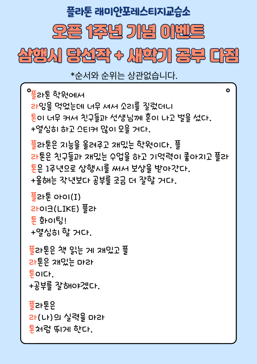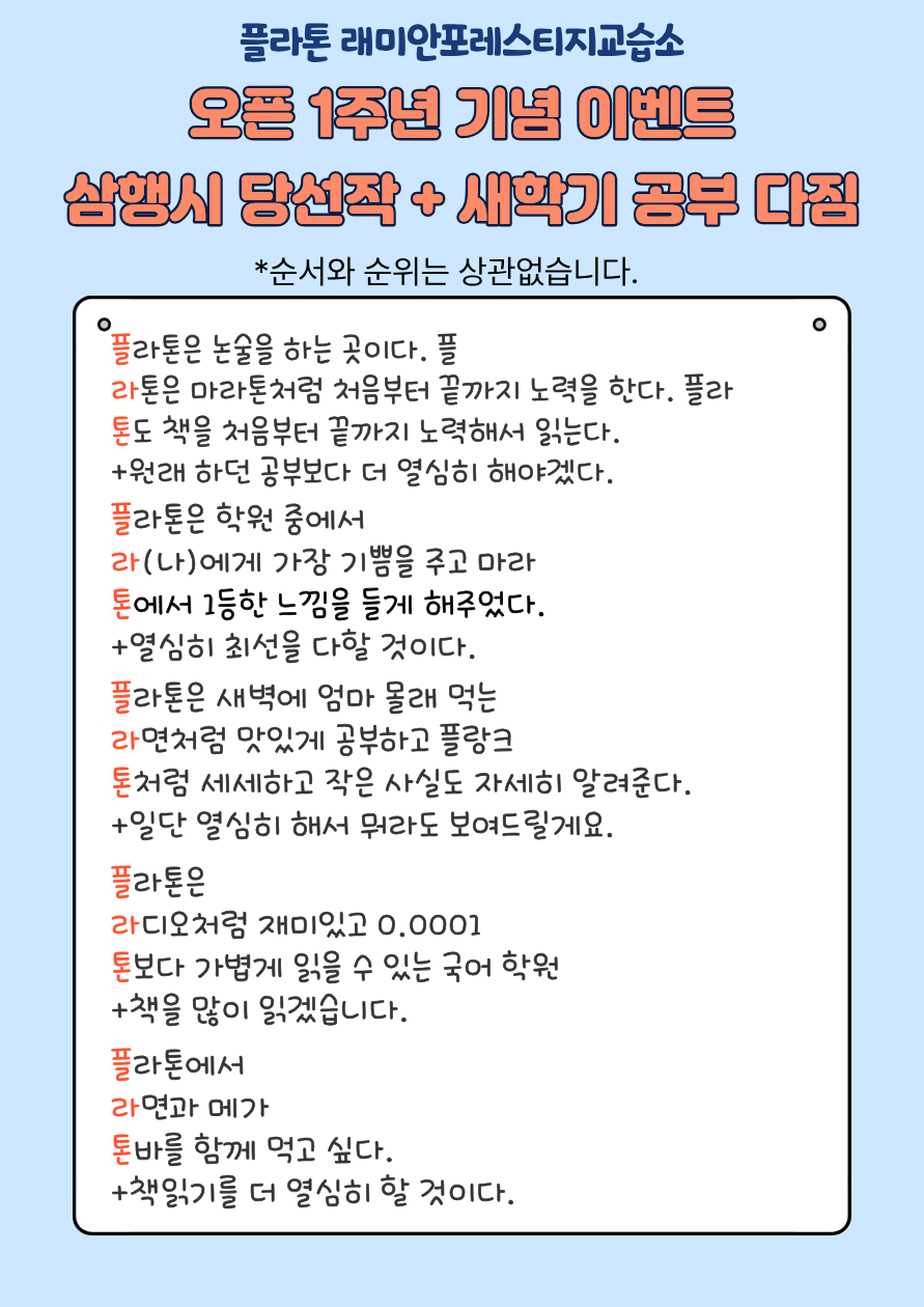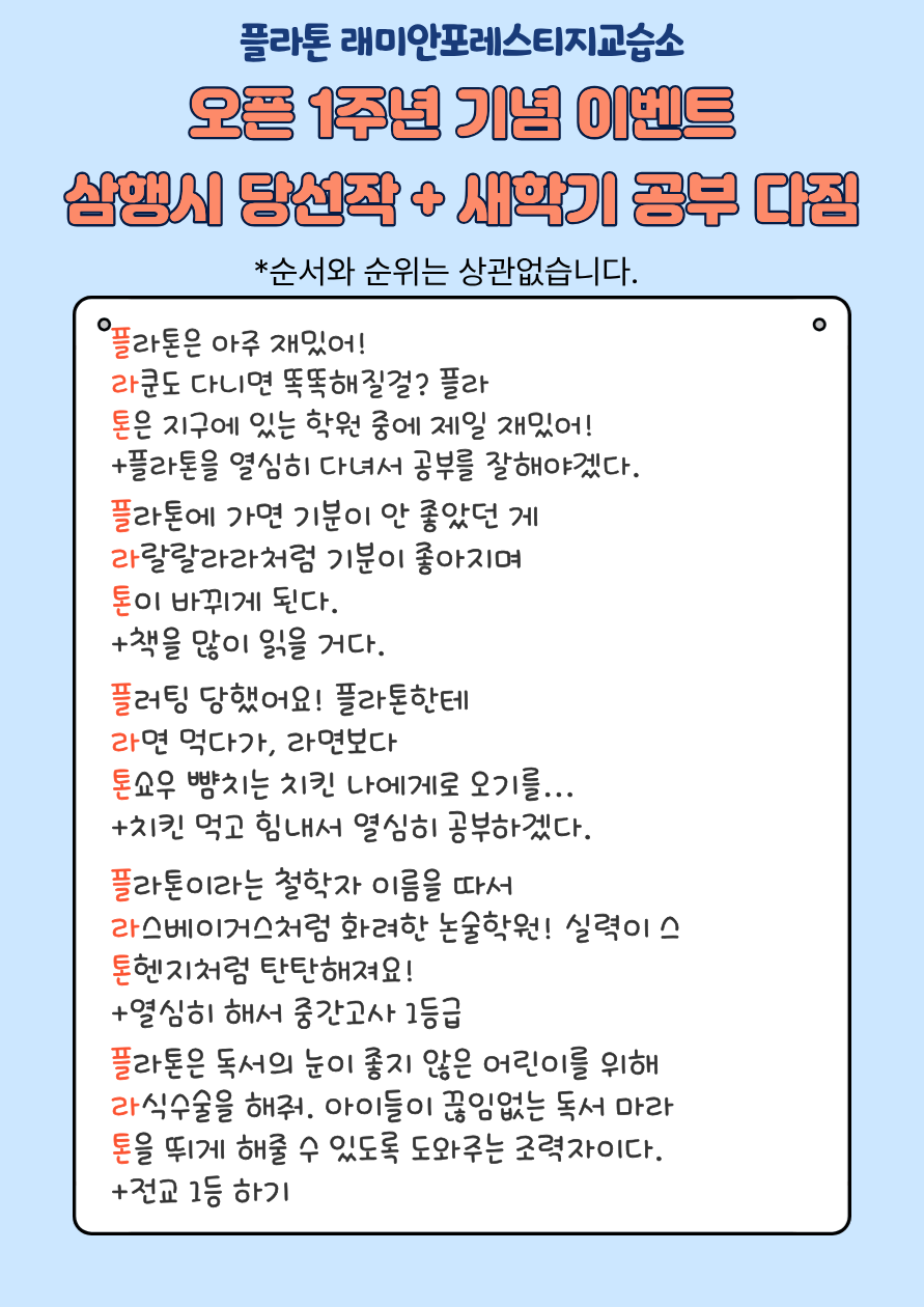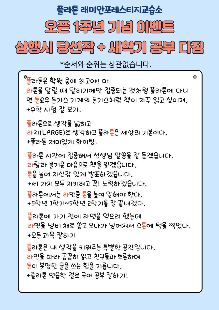 플라톤을 믿고 성원해주신 학부모님들,