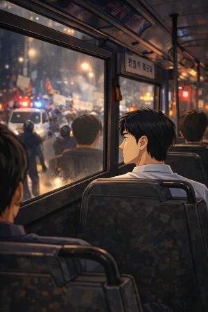 이곳에서 그는 버스를 갈아타고 오는데, “가는 날이 장날이라고.” 하필 그날따라 시청과 을지로에서 시민 데모가 크게 있었다. 평소 1시간 정도 걸리던 버스는 세 시간 삼십 분 넘게 걸렸다.