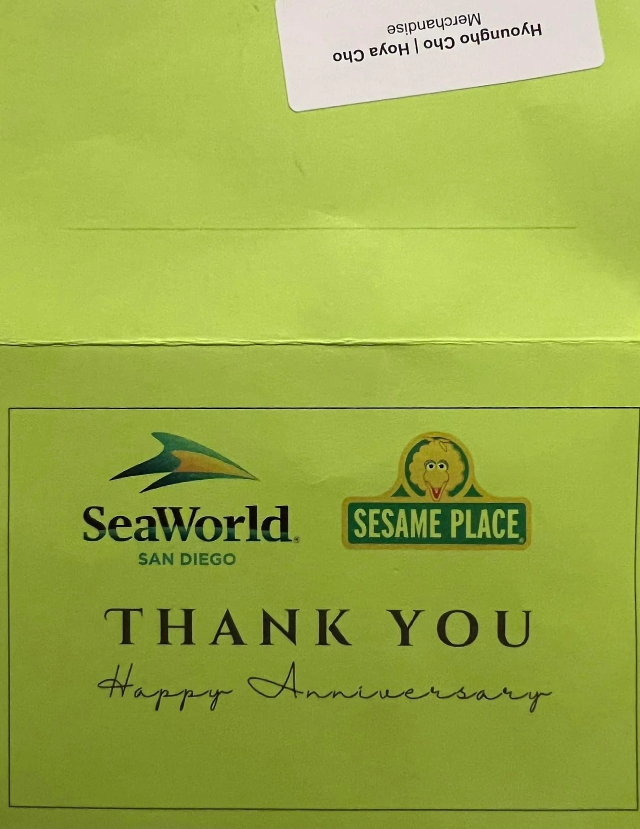 Sea World에서 근속 1년을 기념해 보낸 초대장. 앞으로 우리 부부는 맥주는 버드와이저와 스텔라, 미켈럽만 마실테다!