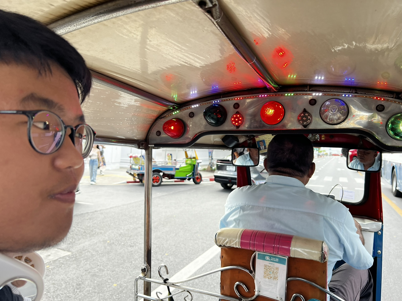 드디어 호야가 툭툭이도 탑승했다! 올 때는 수상택시를 타고 돌아오려고 했었는데, 빗방울이 떨어지는 통에 수상택시는 이번에는 못 탔다. 수상택시를 타고 짜오프라야 강을 따라 내려오며 강변에 있는 아름다운 사원들을 보고 싶었는데, 아쉽지만 이것은 다음 기회에 보는 걸로.