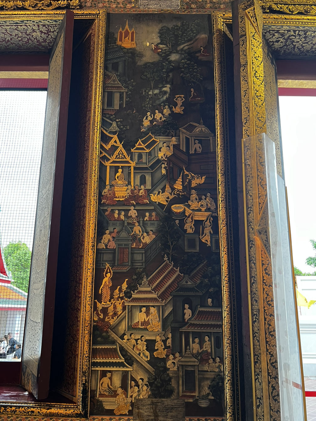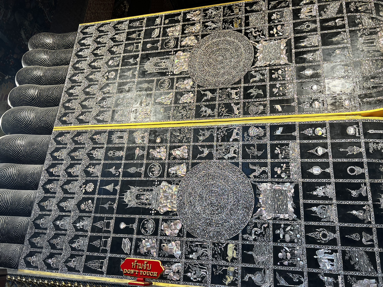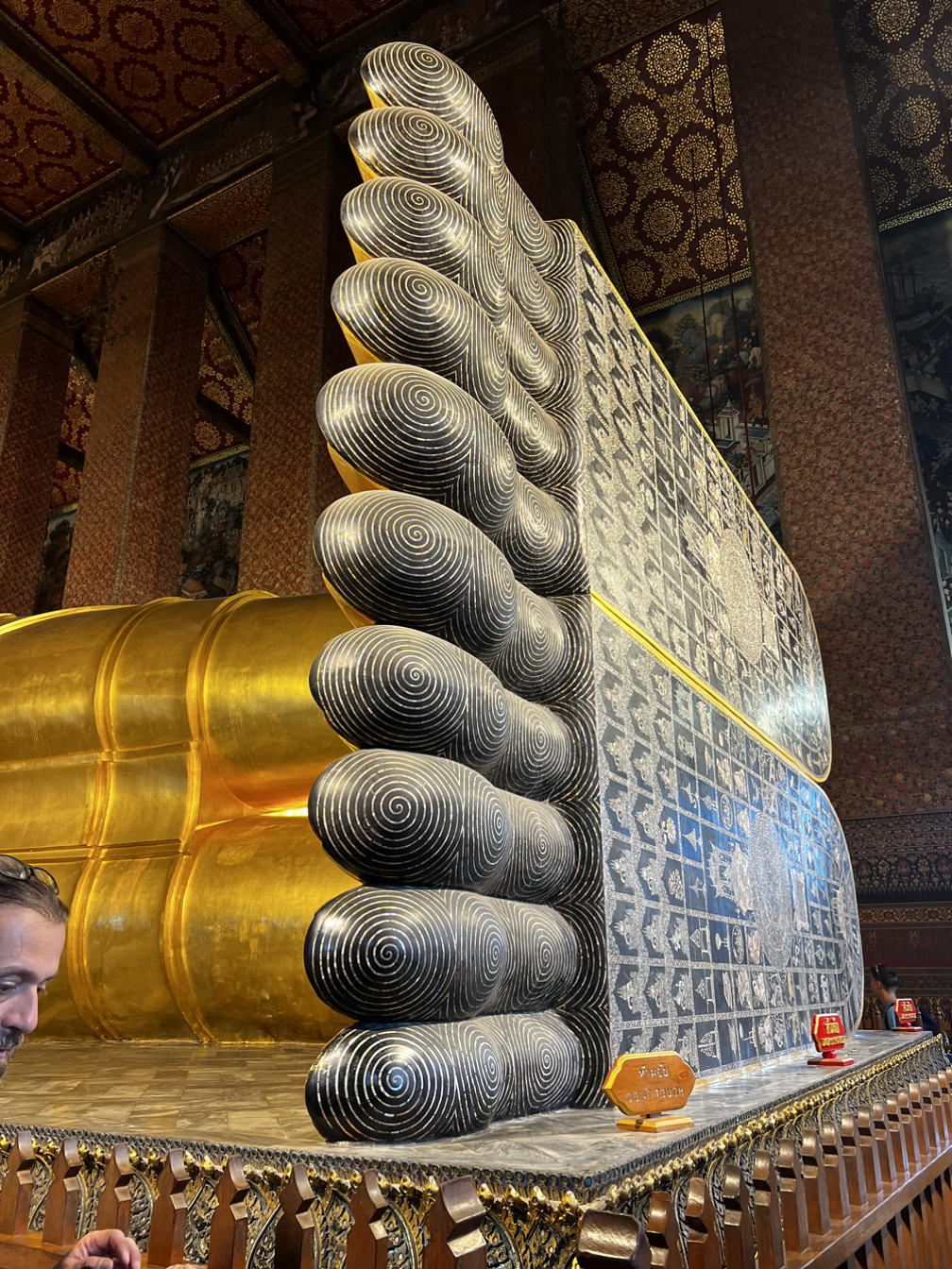 개인적으로 저 거대한 와불은 크기만 했지 그다지 나에게는 매력적이지 않았는데, 대신 법당 내 문에 그려진 다양하고 섬세한 법화들, 그리고 부처님 발바닥에 새겨진 섬세한 부조들, 그리고 아름다운 사원 지붕들이 너무 마음에 들었다. 법당도 아름다웠지만 법당 밖에서 관광하고 나온 사람들이 그늘에서 더위도 식히고 물 마시며 다리 쉼도 하는 모습에서 이곳은 마치 공원인 것 같은 느낌도 들었다. 호야도 여기가 마음에 들었는지 나보고 자꾸 자기 사진을 찍어달란다. 인스타에 빨리 올려야 한다고.