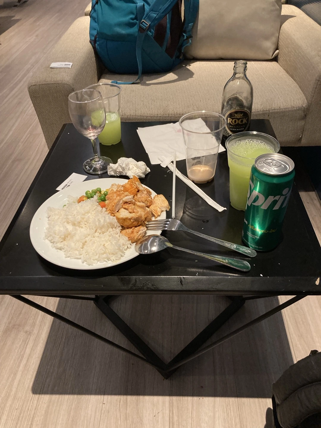 게다가 라운지가 냉방이 잘 안 되는지, 아니면 사람들에게서 나오는 열기 때문인지 엄청 더웠다. 라운지 가운데에 따로 냉풍기가 돌아가고 있었는데, 그거 말고는 다른 냉방 기구는 없는 듯했다. 서빙되는 식기는 제대로 안 말렸는지 물기가 그대로였고..
