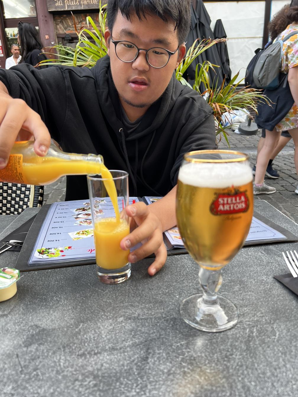 브뤼셀은 보통 여행 중에 스쳐 지나가는 경유지로 많이 들른다고 한다. 나도 같은 이유로 브뤼셀로 왔다. 내일 뉴욕으로 가는 비즈니스 좌석이 있었기에 브뤼셀을 이번 여행 목적지로 넣었다. 목적지는 목적지이되, 경유지 같은 목적지랄까? 암튼 별 기대 없이 일정에 넣은 곳이었는데, 호야에게는 이곳이 독일만큼이나 좋았다고 한다 독일에서 유명한 소시지만큼이나 호야가 좋아하는 메뉴가 감자튀김이다. 심지어 브뤼셀에는 감튀 자판기가 있다는 말에 호야는 더더욱 브뤼셀을 기대했다. 나는 호야랑 벨기에에서 먹을 음식들 리스트를 만들었다. 제일 위에는 역시 호야의 최애 음식인 감튀가 있었고, 와플, 나는 맥주, 그리고 홍합요리를 꼭 먹고 가겠다 다짐했다.