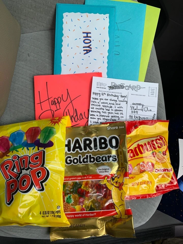 나중에 알고 보니 선생님과 친구들이 아들 생일 축하 카드랑 간단한 Sweet들을 보내기로 한 것이었다. 학교에 가져다 놓기엔 너무 먼 곳에 사는 친구는 선물을 집으로 배송 보낸 것이고.
