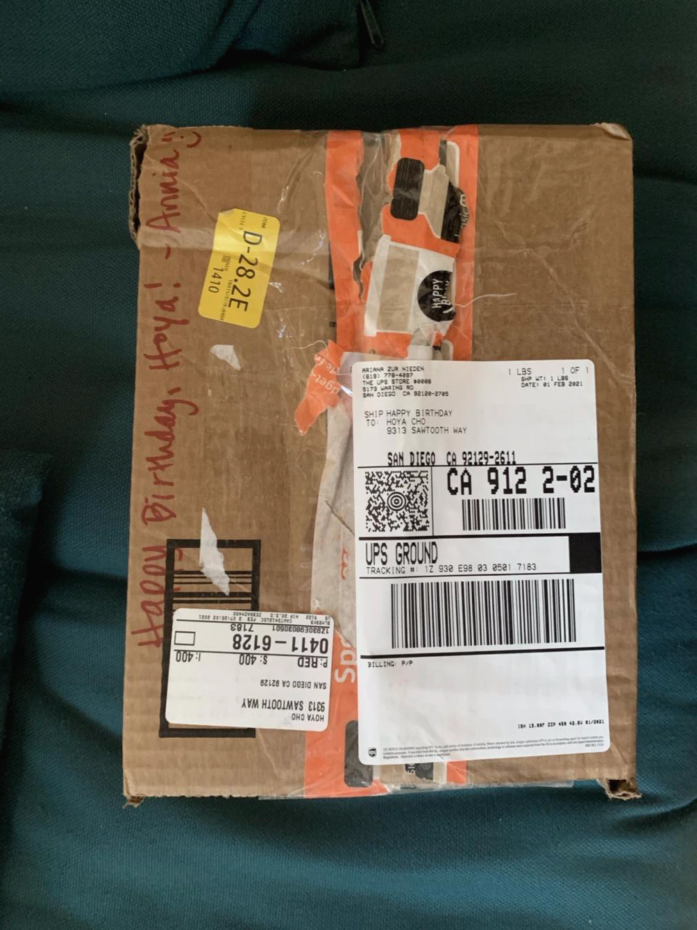 정성이 고마워 기프트 백 가지러 편도 30분, 왕복 1시간을 운전해 다녀오니, 페덱스 기사가 허름한 박스 하나를 던져 주고 간다. 다 찌그러져가는 박스라 대체 어느 회사에서 이렇게 엉망인 상태로 물건을 배송했나 싶어 앞부분을 살펴보니, 예상치도 못한 생일 메시지가 적혀있다. Happy Birthday, xx!(생선 6호)