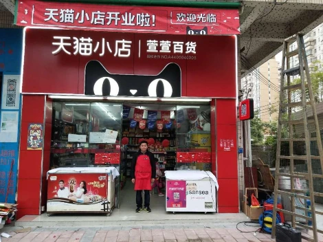 (참고로 텐마오 샤오디엔 [天猫小店]은 링셔우통 전략의 일환으로 기존의 소규모 매점을 아예 간판을 텐마오샤오디엔으로 새롭게 달고 내부 인테리어 및 매대 배치 등을 전체적으로 완전히 다시 짜는 가맹점 영업 방식이다. 인테리어 비용 등은 점주 부담)