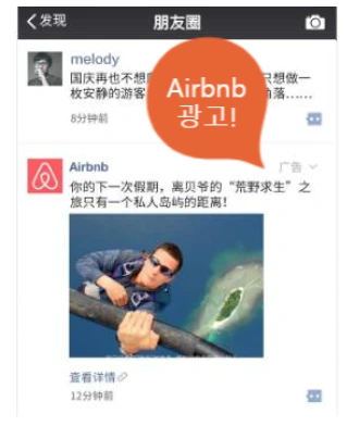 그리고 지인들이 올리는 광고 외에 은근슬쩍 웨이신에서 광고비를 받고 올리는 모멘트를 가장한 광고들도 올라가서 모멘트는 웨이신의 주요한 광고 플랫폼으로도 쓰인다. 페이스북이나 인스타그램과 동일한 피드 광고로 보면 된다. 물론 귀퉁이에 아주 작게 광고라는 문구는 들어가 있다. 웨이신의 자체 광고 피드도 약간 피곤하긴 하다.