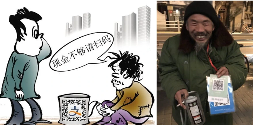 중국의 허름한 노점상이나 거지들도 들고 다니는 큐알코드가 바로 자신들의 모바일 계좌(주로 알리페이와 웨이신 페이)와 연동된 것이라서, 그 큐알코드를 스캔하면 금액을 입력하는 란이 나온다.