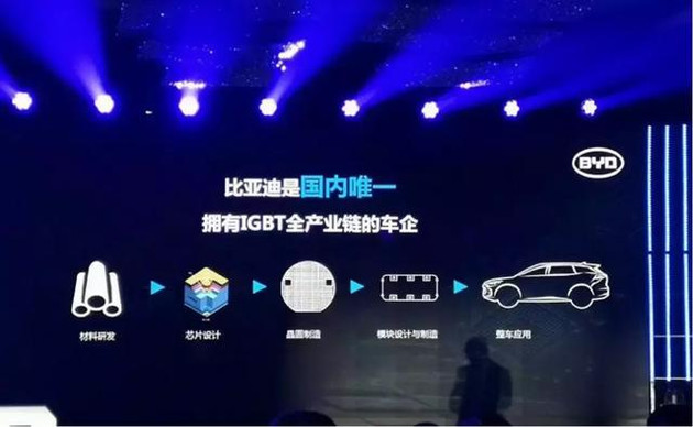 2018년도 12월에 비야디의 IGBT 4.0 발표 자료를 보면 비야디는 중국 내에서 유일하게 IGBT의 전체 공급체인을 보유한 자동차 기업이라고 당당하게 홍보하고 있다.