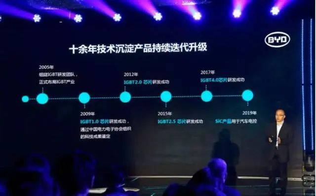 2010년 비야디는 처음으로 자사에서 연구개발한 IGBT 1.0를 출시하고, 지속적인 업그레이드를 통해 2018년 12월 비야디는 IGBT 4.0을 공개했으며 이를 통해 비야디 전기차 출력을 경쟁사 대비 15% 향상, 에너지 소모를 20% 이상 절감했다고 발표했다. 그 뿐 아니라 반도체 모듈의 수명도 10배 이상 향상시켰다는 내용도 포함되어 있다.
