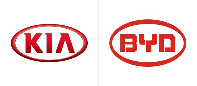 다른 얘기긴 한데 지금은 기아와 비야디 로고가 모두 다 바뀌었지만 바로 직전까지 빨간 타원형 안에 BYD가 적혀있는 비야디의 로고는 똑같이 빨간 타원형 안에 KIA가 적혀있는 로고와 상당히 유사하다.