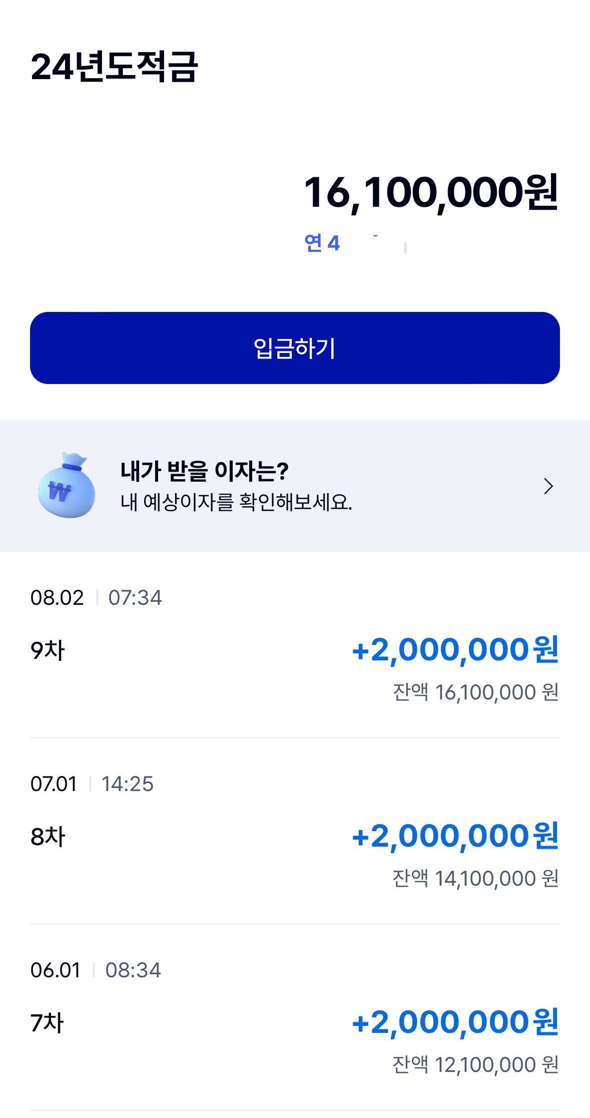 올해 1월부터 매월 200만 원씩 적금을 했다.